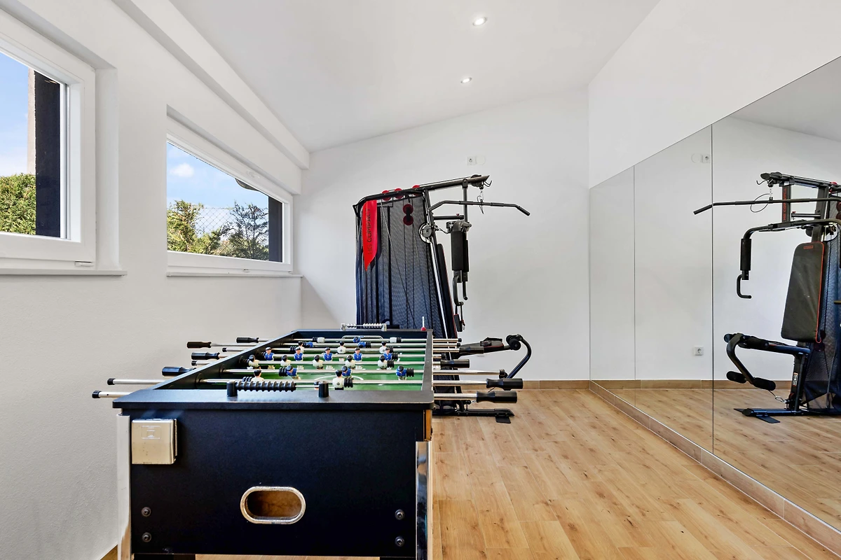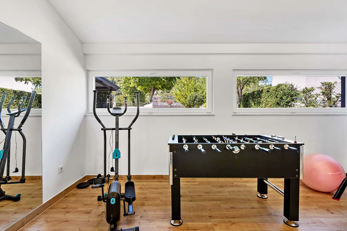 Gäste können die beeindruckenden Annehmlichkeiten der Villa geniessen, einschliesslich eines privaten beheizten Schwimmbads (5x8 Meter), eines voll ausgestatteten Fitnessraums, Sauna, Spa und Whirlpool. Die Immobilie verfügt über Zentralheizung und Klimaanlage und gewährleistet so Komfort in allen Jahreszeiten. Hochgeschwindigkeits-WLAN und Satellitenfernsehen stehen für Unterhaltung und Konnektivität zur Verfügung.