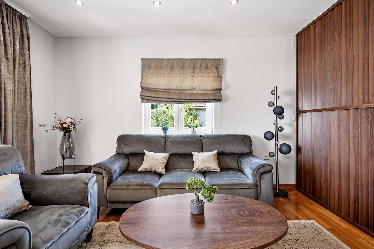 Die Aussenbereiche sind ebenso beeindruckend, mit einem geräumigen 1.400 Quadratmeter grossen Grundstück, das einen wunderschönen Garten, einen Grillbereich und eine Terrasse umfasst. Die Villa bietet atemberaubende Ausblicke auf den Pool und den Garten und schafft so eine ruhige und malerische Umgebung.
