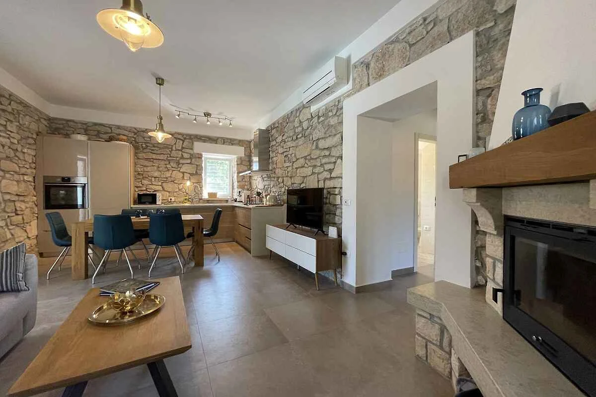 Nedešćina. Das Ferienhaus befindet sich auf einem offenen Grundstück. Der Vermieter wohnt nicht im Haus oder auf dem Grundstück. Die Zufahrt erfolgt über eine Nebenstrasse (asphaltiert).