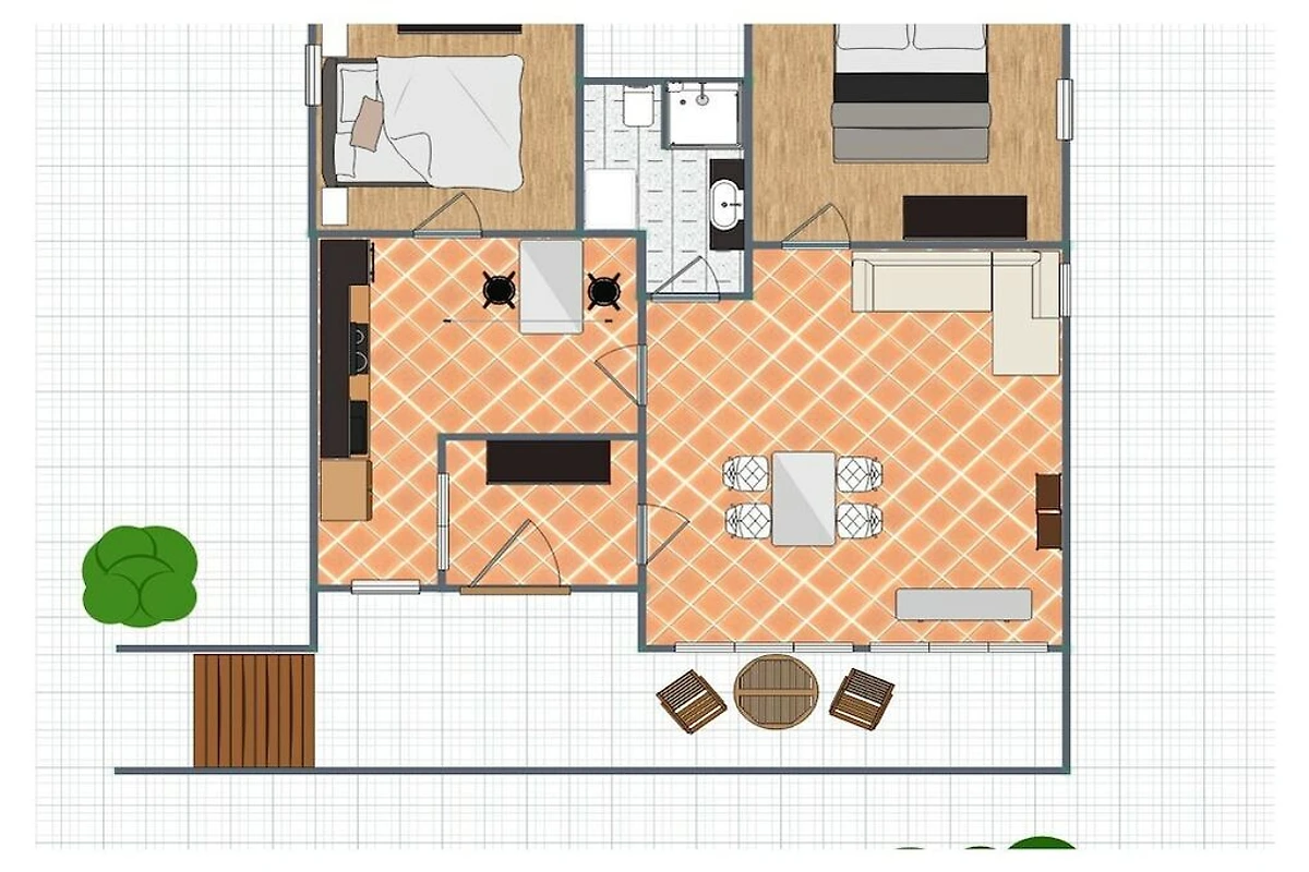 Das große gemütliche Appartement „Rauchkofel“ beeindruckt mit 2 Schlafzimmern, einem großen Wohnzimmer, einer geräumigen Küche und einem wunderschönen vorgelagerten privaten Garten.