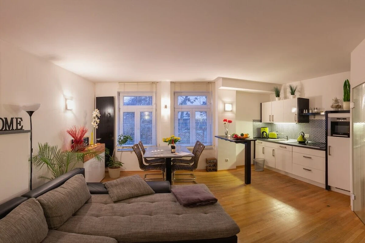 Sie wohnen am Rande der äußeren Neustadt, zentral im Herzen der Stadt Dresden. Das Apartment befindet sich im Erdgeschoss eines neu gebauten Hauses, welches in 2. Reihe steht und deshalb ruhig liegt. Sie haben alles, was man für einen gelungenen Urlaub braucht. Die Wohnung verfügt über ein Schlafzimmer mit Doppelbett und Einzelbett, Wohnzimmer mit Schlafsofa, moderne Küchenzeile, Tisch mit Stühlen, Bad mit Dusche. Im Außenbereich gibt es Sitzmöglichkeiten, welche unsere Gäste nutzen können. Auf Wunsch können Sie auch einen Parkplatz im Innenhof oder Tiefgarage für 10 €/Nacht buchen. Da die Anzahl begrenzt ist, bitte immer gleich mit anfragen. Ringsum locken Geschäfte, Boutiquen, Galerien und nette Restaurants .