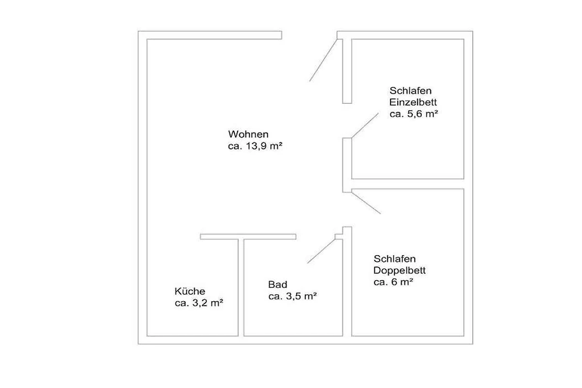 - 2 Schlafzimmer (1x Doppelbett (160 x 200 cm), 1x Einzelbett)