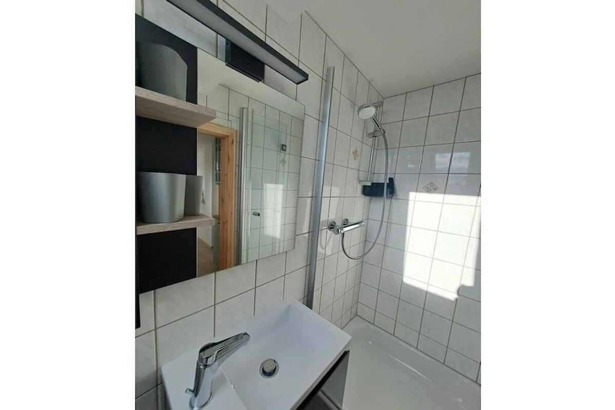 - Bad mit Tageslicht, ebenerdiger Dusche, WC, Waschbecken und Haartrockner