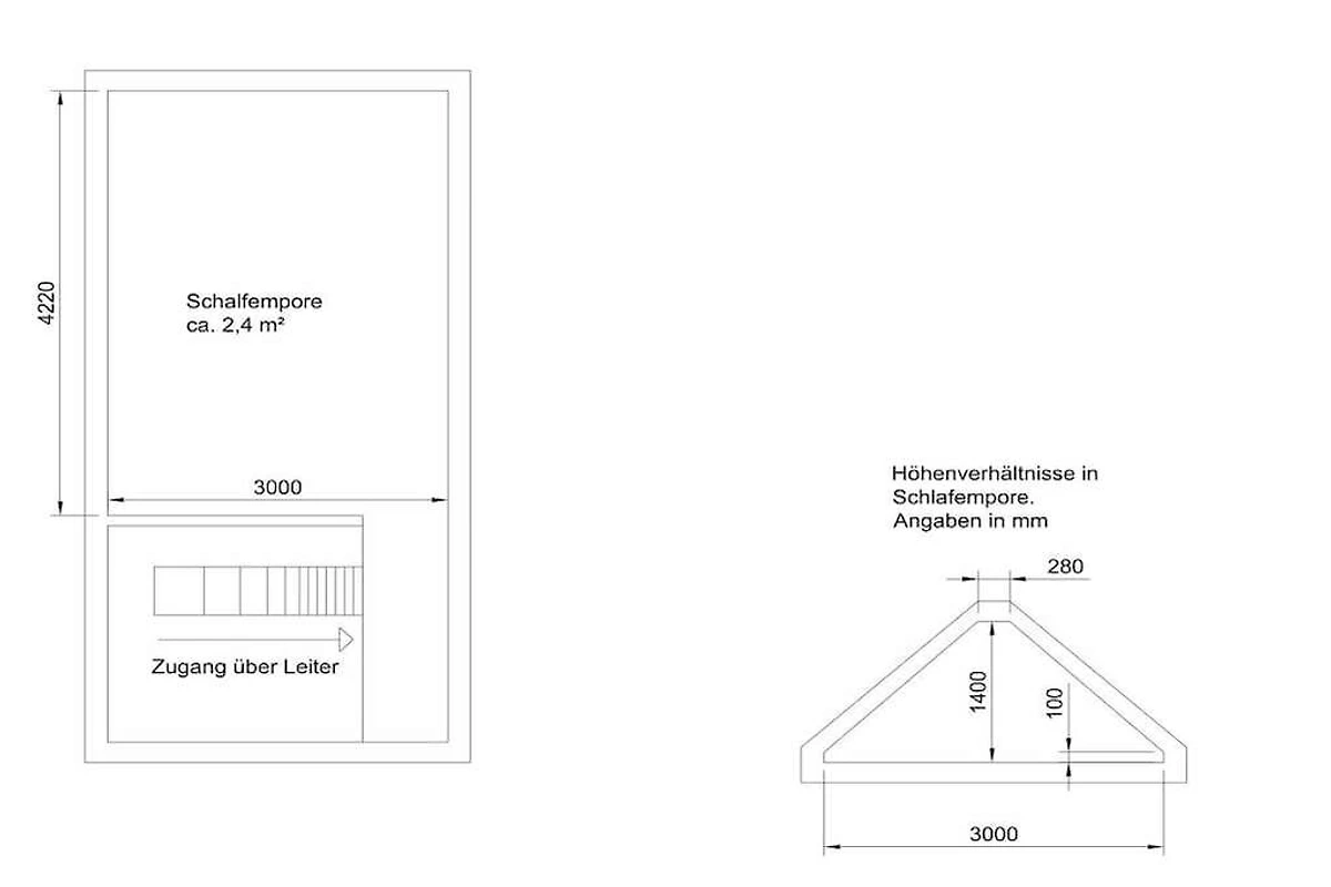 - Schlafempore, die als Aufbettung oder Kinderspielecke genutzt werden kann