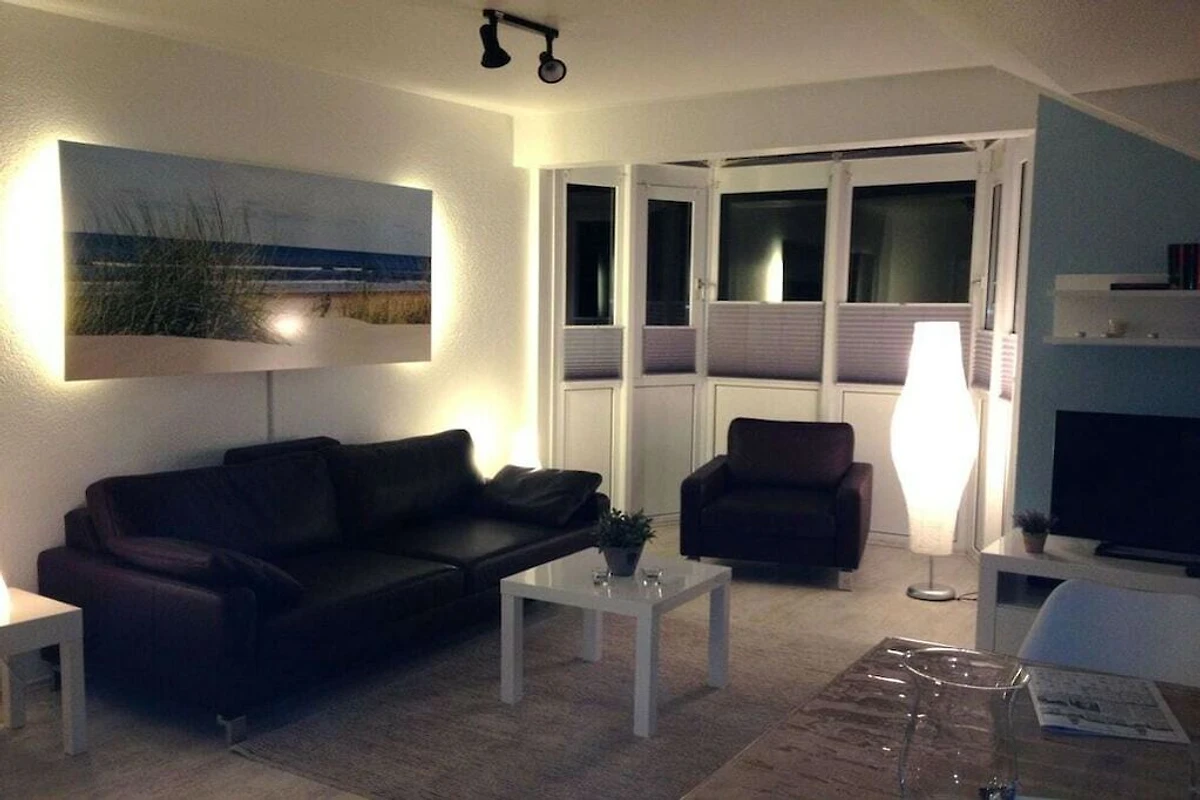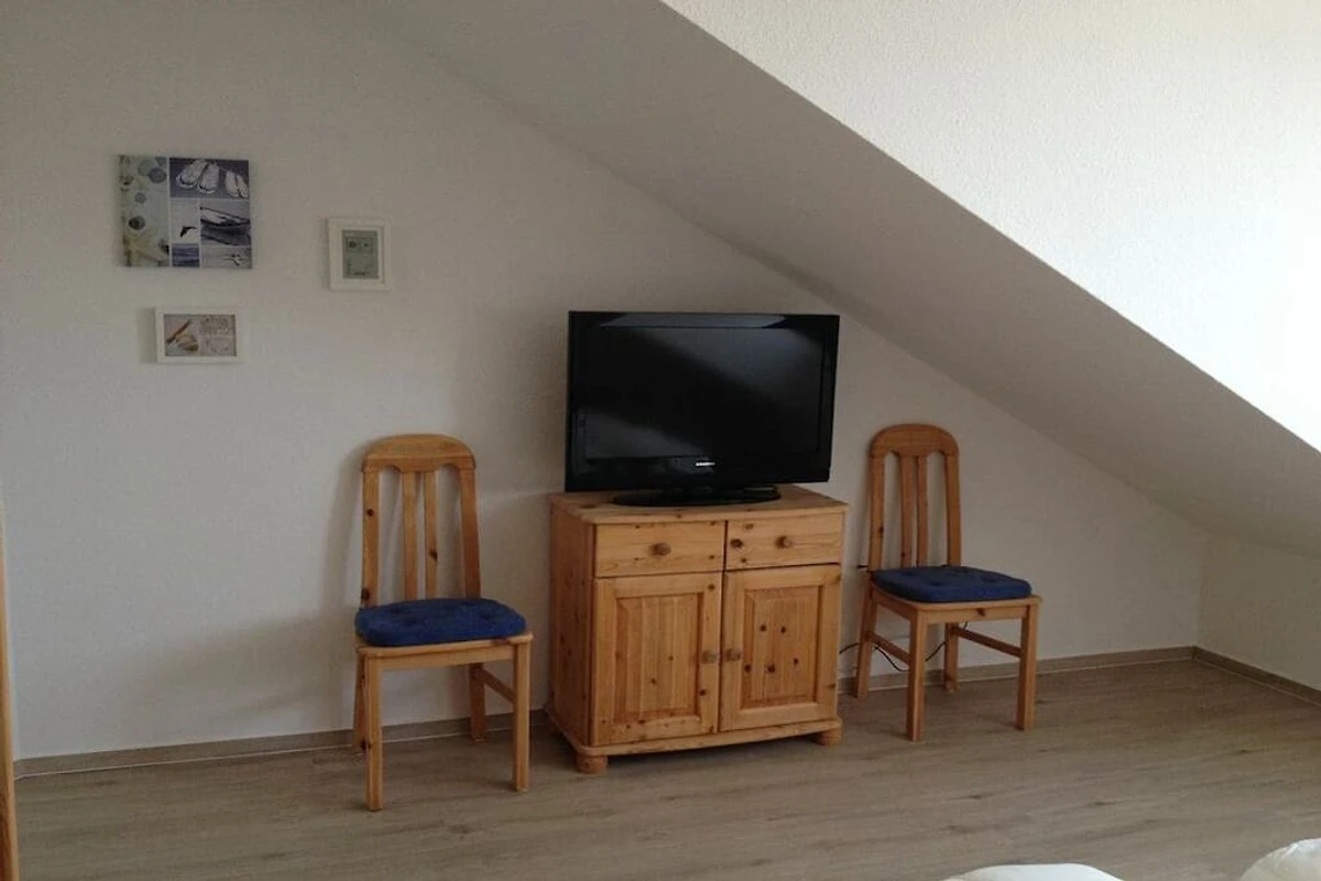 Die Ferienwohnung verfügt über zwei getrennte Schlafzimmer. Im Wohnzimmer und im Schlafzimmer ist ein Flachbildschirmfernseher (39 Zoll) installiert. Eine Internetflatrate ist freigeschaltet. Abgehend vom Wohnzimmer befindet sich ein nach Süd/Westen ausgerichteter Balkon. Bei klarer Sicht sehen Sie vom Frühstückstisch aus die Ostsee.