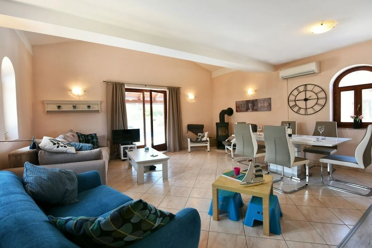 Villa Cherry House ist eine neu gebaute Villa mit privatem Pool und Garten. 15 min Fahrt zum Meer. Die Villa ist eine Kombination aus einem traditionellen istrischen Haus und einem modernen Haus.Es ist gebaut und ausgestattet mit allen modernen Annehmlichkeiten. Die Villa besteht aus einer Küche, Wohn-und Essbereich, 3 Schlafzimmer, zwei Doppelzimmer und ein Einzelzimmer, 2 Bäder, überdachte Terrasse mit Blick auf den Pool. Das Schlafsofa im Wohnzimmer bieten Platz für 2 Personen.Wenn Sie Arbeit haben, gibt es ein drahtloses Internet zu Ihrer Verfügung. Geräumiges Haus mit einer großen überdachten Terrasse mit Blick auf den privaten Pool.Vollständig umzäuntes Grundstück, BBQ, Parkplatz im im Haus, Meerblick.