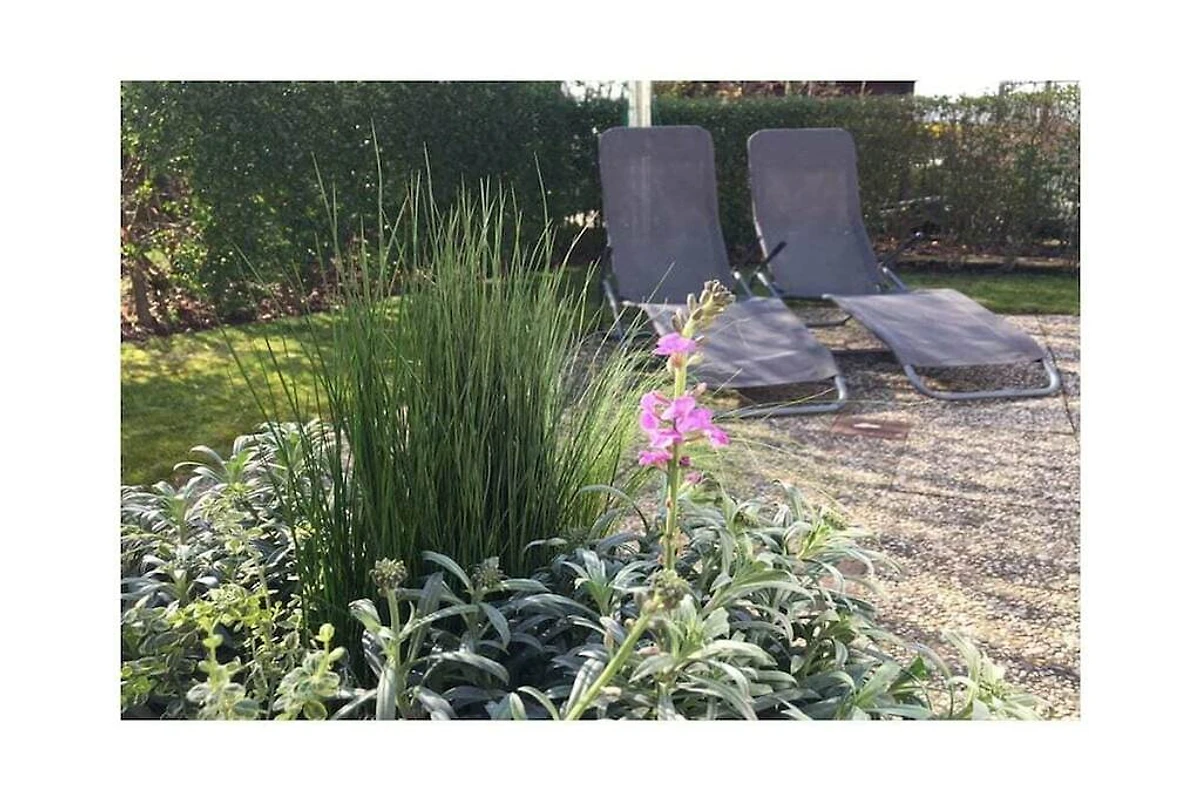 Ein gemütlicher Garten, mit schönen Pflanzen und natürlichen Gartenmöbel.