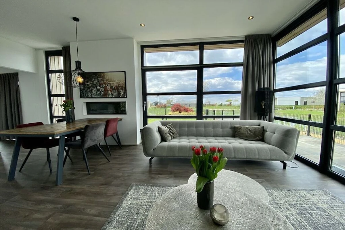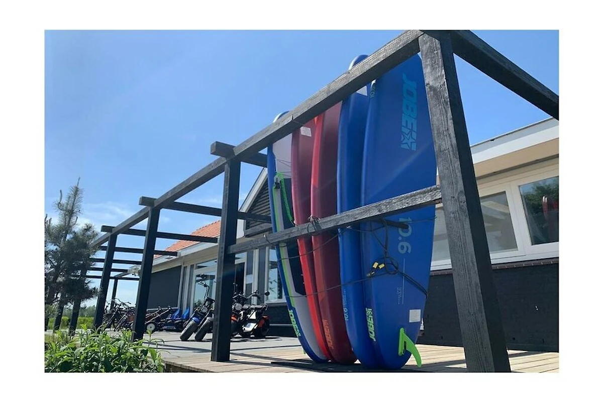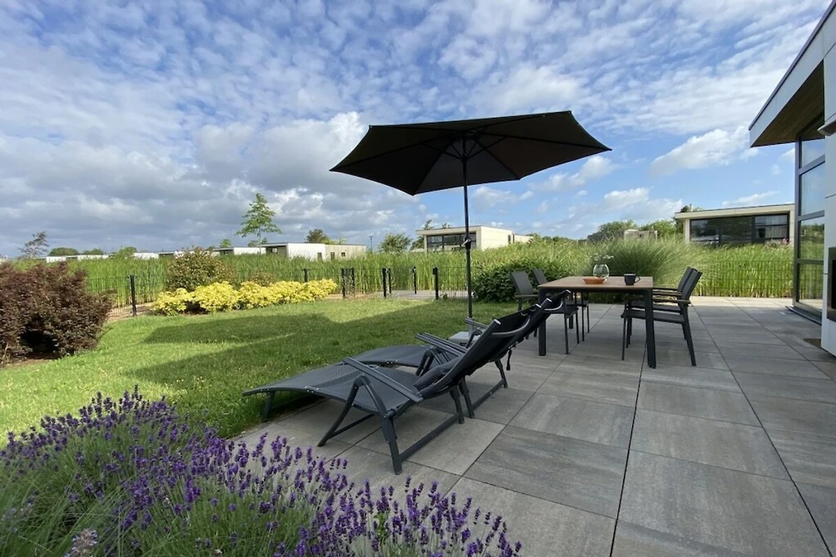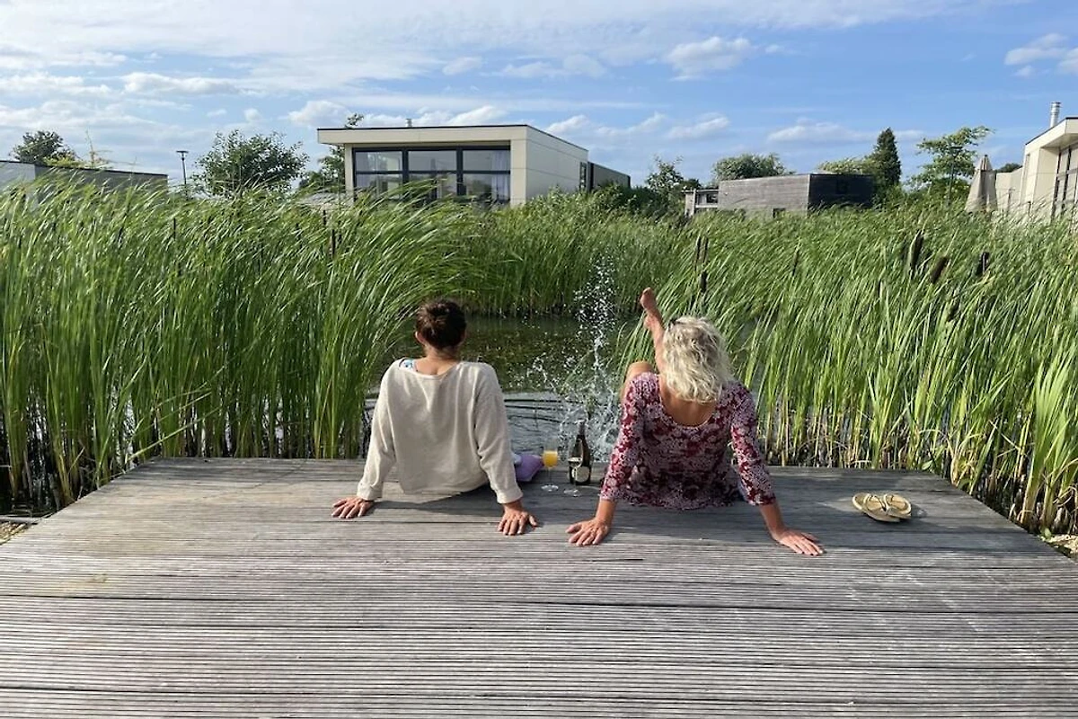 Unser modernes und lichtdurchflutetes Chalet für 4 Personen liegt auf einem wunderschönen Grundstück umgeben von einem künstlich angelegten Wasserlauf. Das Grundstück ist komplett eingezäunt und somit eignet sich unser Chalet perfekt für einen entspannten Urlaub mit jüngeren Kindern oder mit Hunden. Die großzügige Terrasse ist mit Gartenmöbeln und Sonnenliegen ausgestattet. Der herrliche Blick über Wasser und Schilf lädt zu langen Sommerabenden auf dem eigenen Grundstück ein. Ein privater Steg zum Sonnen und Entspannen kann über ein Törchen vom Garten aus betreten werden.