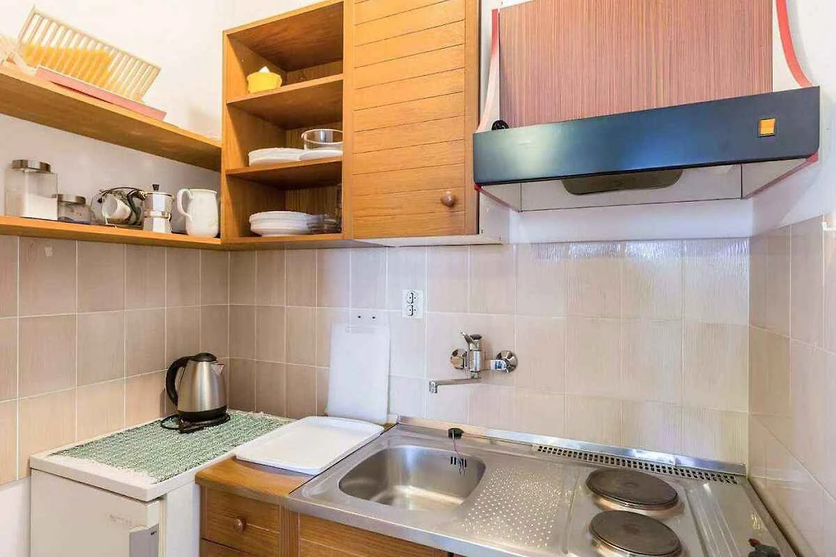 Pješćana Uvala. Das Studio befindet sich auf einem geschlossenen Gartengrundstück mit Blumen, Sträuchern und Bäumen, von einer Mauer begrenzt. Der Vermieter wohnt ständig im Haus, nutzt jedoch einen separaten Eingang. Die Zufahrt erfolgt über eine Nebenstrasse (asphaltiert). Parkplatz auf der Strasse vor dem Haus.