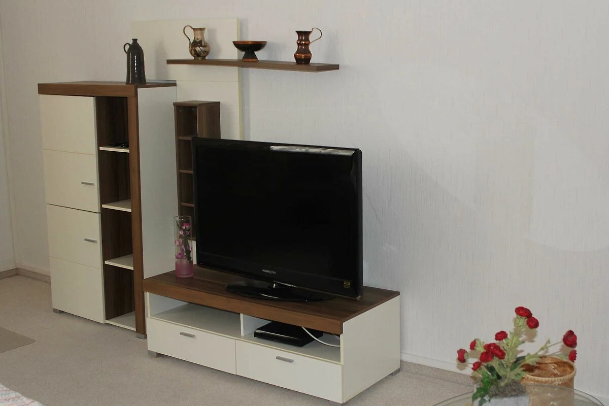 Das ca. 50 m² grosse Apartment für 3 Personen befindet sich in der 1. Etage eines Wohn- und Geschäftshauses im Güstrower Stadtzentrum. Das helle und ruhige Zimmer mit TV ist modern eingerichtet und hat ein Doppelbett in bequemer Höhe. Für die 3 Personen steht ein 1 m breites Bett in einem 2. Raum. In der Küche befindet sich ein Elektroherd, Geschirrspüler, Mikrowelle und ein Essplatz für 3. Personen. Zum Apartment gehört ein grosszügiges modernes Bad. Wegen der zentralen Lage sind Restaurants, Cafés, Einkaufsmöglichkeiten, Sehenswürdigkeiten und Freizeitmöglichkeiten sowie Bus- und Bahnanbindungen in wenigen Minuten zu Fuss zu erreichen.