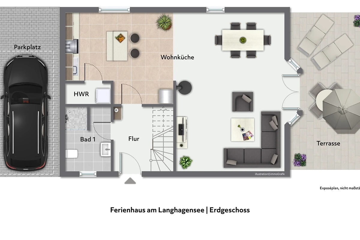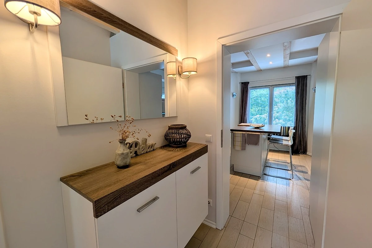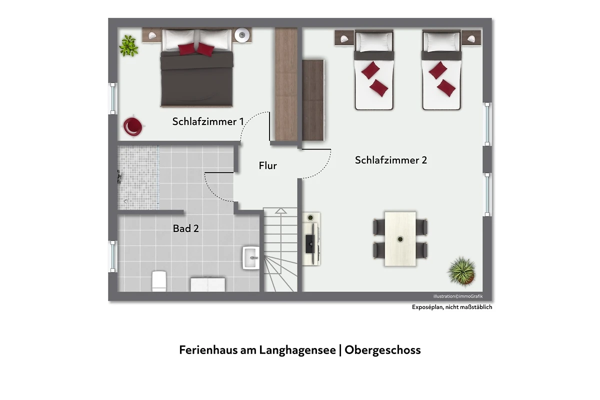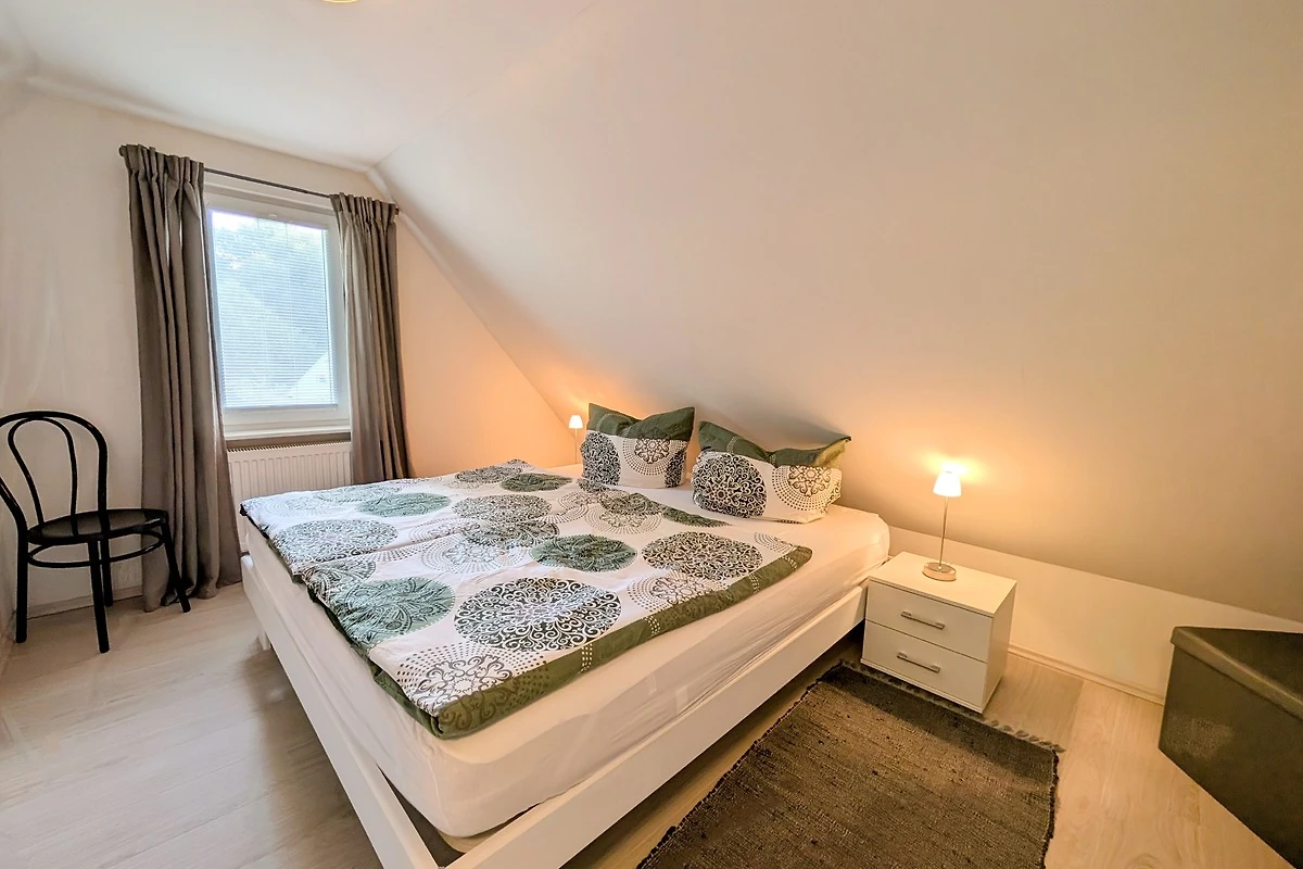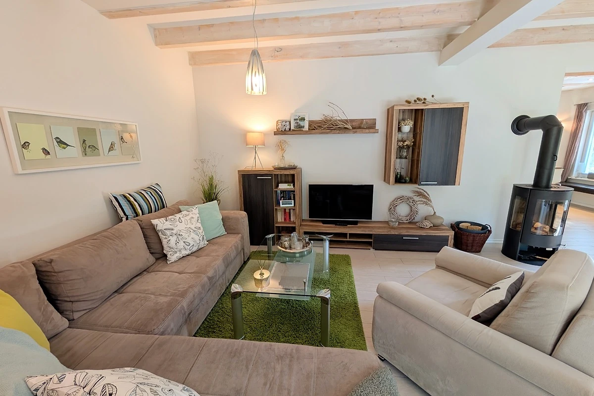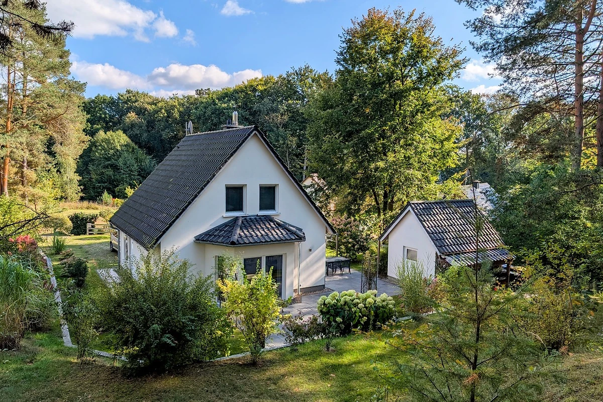 Hochwertig und komfortabel in entzückender Naturlage – so könnte man dieses Haus beschreiben. Auf 100m² Wohnfläche können sich bis zu 4 Erwachsene + 1 Kleinkind rundum wohlfühlen. Die offene Wohnküche bildet das Zentrum des Hauses und lädt zum gemütlichen Beisammensein ein. Die Küche ist vollwertig ausgestattet, so dass Sie nichts vermissen werden. Ein Kaminofen sorgt für Gemütlichkeit. Das moderne Bad, mit großer ebenerdiger Dusche bilden mit dem Wohnbereich den Grundriss im Erdgeschoss. Die beiden Schlafzimmer im Obergeschoss, dienen als idealer Rückzugsort. Die ruhige Umgebung bietet höchsten Erholungswert. Eines der Schlafzimmer ist mit Sat-TV, Tisch und Stühlen ausgestattet. Vom Schlafzimmer und dem Grundstück können Sie den Ausblick zum Langhagensee genießen. Für den gewünschten Komfort befindet sich im Obergeschoss ein weiteres, vollwertiges Bad.