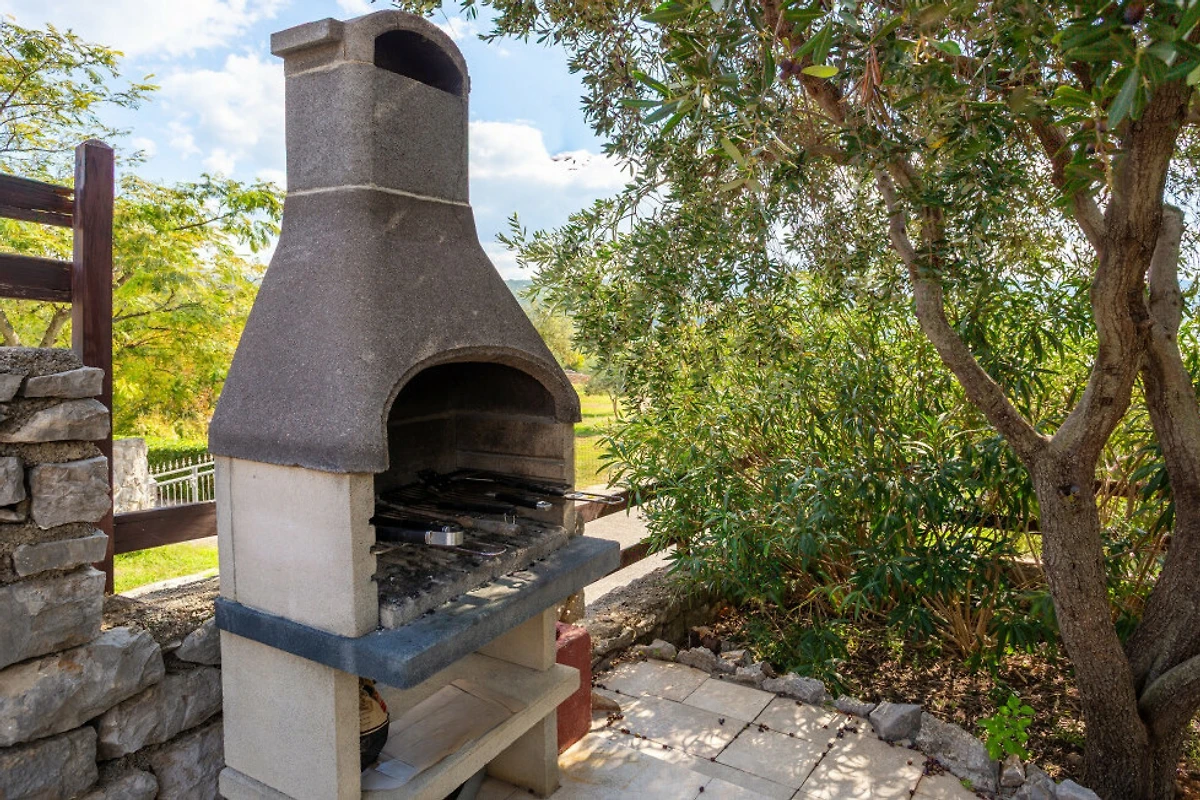 Gäste werden die durchdachten Eigenschaften der Unterkunft zu schätzen wissen, darunter Klimaanlage, WLAN, 2 Fernseher, ein Bügeleisen und einen gemütlichen Kamin. Die Aussenbereiche sind ebenso beeindruckend, mit einem privaten Garten, Grillbereich und einer Terrasse, die atemberaubende Ausblicke auf das Meer, den Pool und die umliegende Landschaft bietet. Das 900 m² grosse Grundstück bietet reichlich Platz zum Entspannen und für Aktivitäten im Freien.