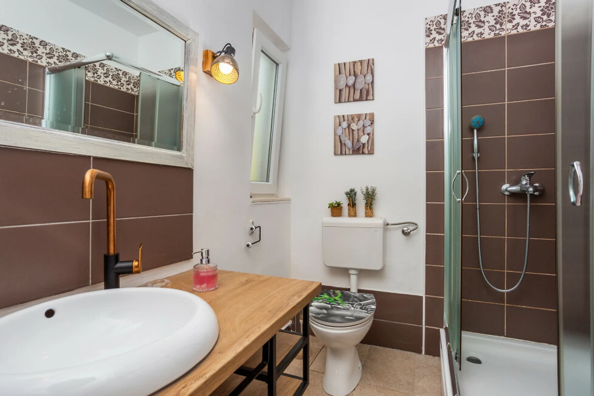 Villa Lucija bietet einen entzückenden familienfreundlichen und paarfreundlichen Rückzugsort, eingebettet in das charmante Küstengebiet von Kornic, direkt neben dem Meer. Diese helle und wunderschöne 110m² grosse Immobilie bietet eine perfekte Balance aus Komfort und Entspannung und verfügt über einen privaten Swimmingpool mit den Massen 8x4 Meter.