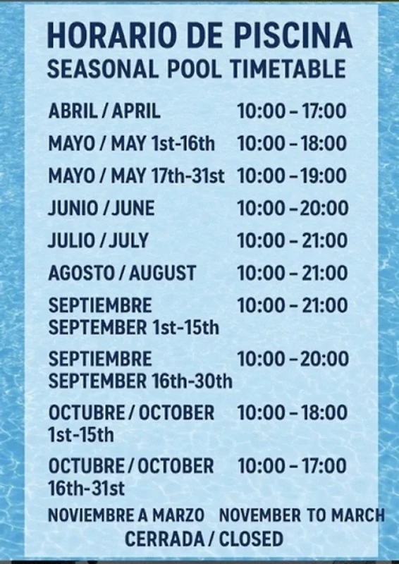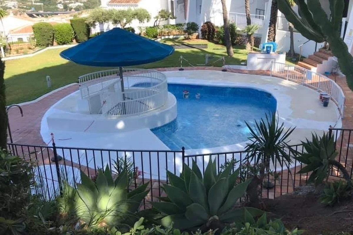 Ein kostenloser Traumpool -geöffnet von April bis November als Gemeinschaftspool (keine Vermieterleistung) kann mit unserer Poolkarte genutzt werden. Es ist der größter Pool in Nerja; 2 Bademeister sind vor Ort. Liegen und Sonnenschirm sind gegen eine geringe Gebühr beim Bademeister buchbar. Die Poolumgebung besticht durch zwei große Liegewiesen mit Traumaussicht, Poolbars und Restaurants. Die Zugangsüberwachung (Poolkarte) erfolgt durch die Bademeister.