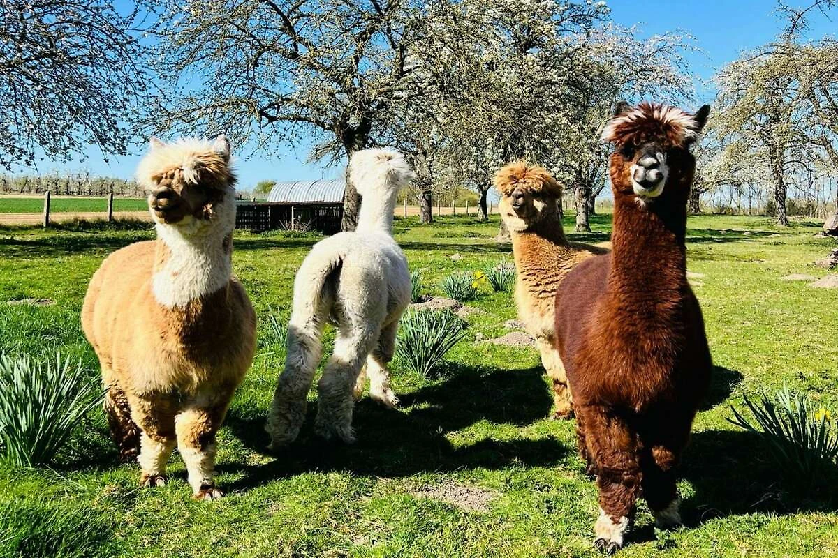 Vom Sofa aus genießen Sie einen wunderschönen Blick auf die Alpakas, den Garten, die Felder und Obstplantagen. Ein einzigartiges und entspannendes Erlebnis. Die Hauptküche im Gemeinschaftsbereich ist komplett ausgestattet mit Geschirrspüler, Kaffeemaschine, Backofen und Mikrowelle. In den anderen Bereichen gibt es zwei weitere Küchen und eine Kochnische. Jedes Haus verfügt über einen Digitalfernseher mit Netflix und YouTube. Parkplätze stehen direkt vor der Tür zur Verfügung, sodass Sie bequem be- und entladen können. Es gibt drei Waschmaschinen, was bei längeren Aufenthalten sehr praktisch ist.
