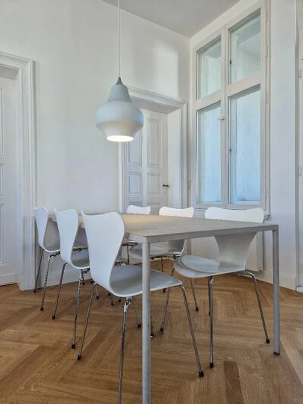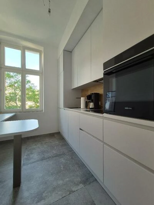 Die Wohnung zeichnet sich durch eine moderne, voll ausgestattete Küche aus. Hier können Sie nach Herzenslust kochen und im Esszimmer gemeinsam speisen. Der großzügige Wohnbereich ist Zentrum der Wohnung und bietet einen direkten Zugang zur großzügigen Loggia. Die großen Fenster sorgen für eine helle und einladende Atmosphäre.