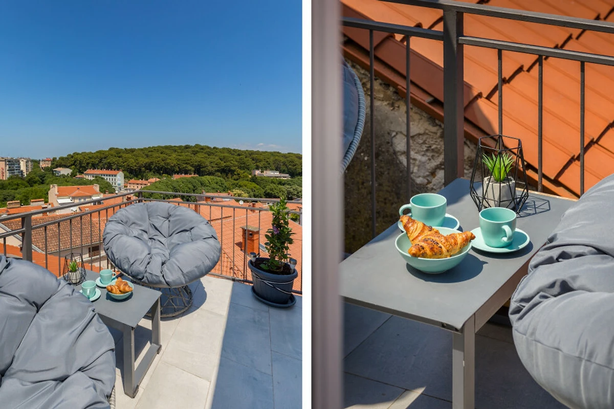 Das Parken ist bequem mit einem öffentlichen Parkplatz im Freien, der sich im selben Gebäude befindet. Die Wohnung liegt nur 2,9 Kilometer von einem Sandstrand entfernt und ist in der Nähe von lokalen Einrichtungen, einschliesslich eines Supermarkts, der 1 Kilometer entfernt ist. Der Flughafen Pula befindet sich in etwa 6 Kilometern Entfernung.