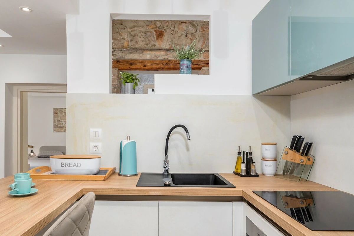 Entdecken Sie eine gemütliche Einzimmerwohnung im Herzen von Pula, perfekt gestaltet für Paare und kleine Familien, die eine komfortable urbane Rückzugsmöglichkeit suchen. Diese 42 Quadratmeter grosse Wohnung bietet eine entzückende Mischung aus modernen Annehmlichkeiten und günstiger Lage, nur 400 Meter vom lebhaften Stadtzentrum von Pula entfernt.
