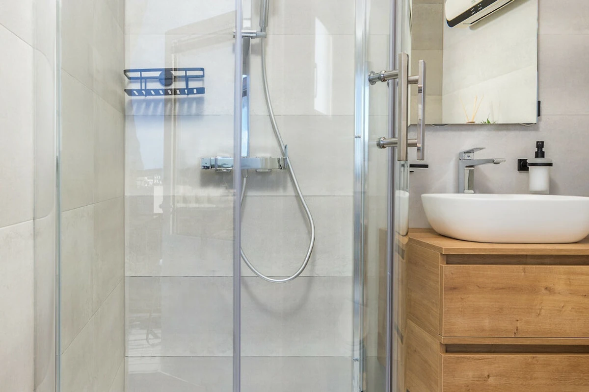Die Wohnung verfügt über ein Badezimmer mit Dusche, was sie ideal für Paare oder Alleinreisende macht. Ein charmanter Balkon bietet einen perfekten Platz, um den Morgenkaffee oder den Abenddrink zu geniessen, während Gartenmöbel entspannte Momente im Freien ermöglichen.