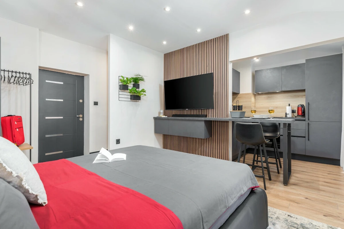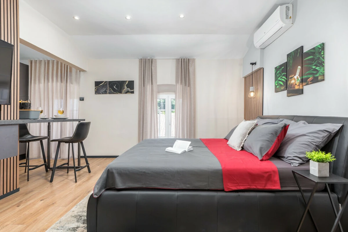 Entdecken Sie eine gemütliche und moderne Studiowohnung im Herzen von Pula, perfekt gestaltet für Paare und Einzelreisende, die eine komfortable urbane Unterkunft suchen. Dieser kompakte 23 Quadratmeter grosse Raum bietet eine warme und einladende Atmosphäre, nur Momente vom Stadtzentrum entfernt.