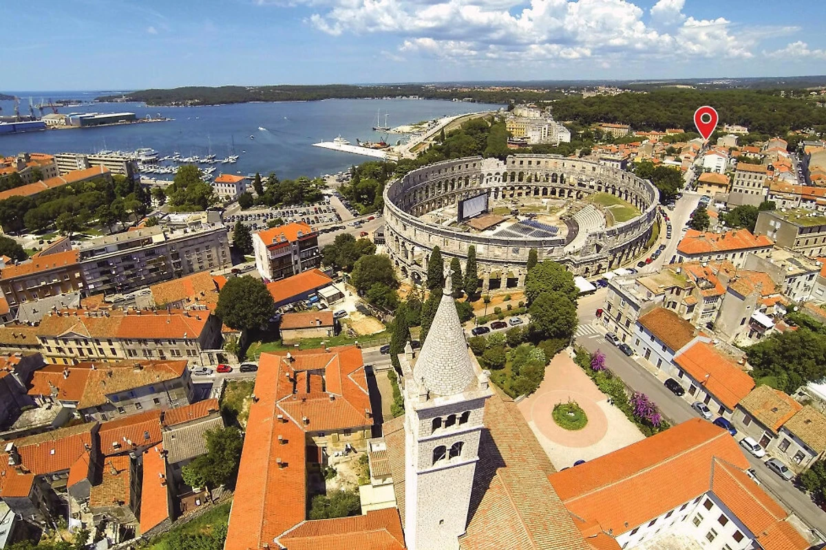 Nur 400 Meter vom Stadtzentrum von Pula entfernt, bietet dieses Studio eine hervorragende Erreichbarkeit. Nahe gelegene Attraktionen umfassen einen Sandstrand 2,9 km entfernt und einen Supermarkt innerhalb von 1 km. Der lokale Flughafen befindet sich bequem 6 km vom Objekt entfernt, was Reiseverbindungen reibungslos macht.