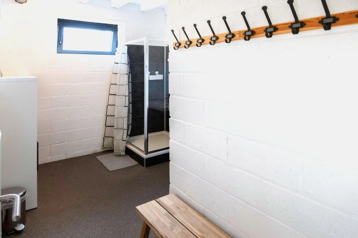 Im Inneren finden Sie eine voll ausgestattete offene Küche, die sich perfekt für ausgiebige Abendessen eignet. Daran angrenzend befindet sich der gemütliche Wohnbereich mit Streaming-Diensten, ideal für entspannte Filmabende. Beide Schlafzimmer verfügen über ein Doppelbett und ein Etagenbett. Das Haus verfügt außerdem über zwei Badezimmer mit Dusche und Waschbecken sowie zwei separate Toiletten. Für zusätzlichen Komfort bei längeren Aufenthalten steht Ihnen eine Waschmaschine zur Verfügung.