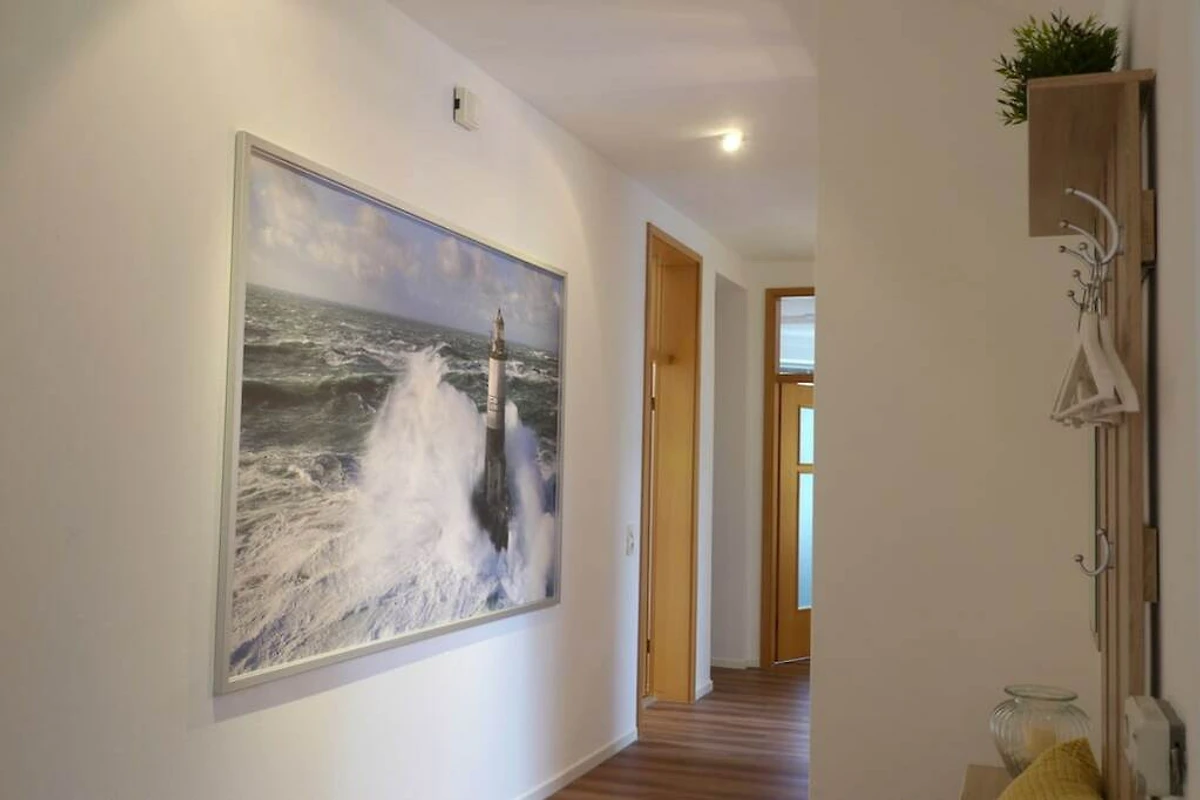 Die Ferienwohnung hat eine Größe von ca. 120m², liegt im 1. OG und besteht aus Wohn-/Esszimmer mit offener Küche, 2 Schlafzimmern, Badezimmer, separatem WC, Flur mit Lese- und Spielecke, Hauswirtschaftsraum und kleinem Wohnzimmer.