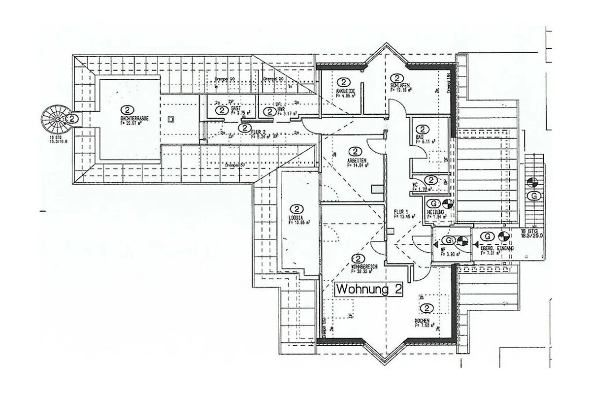 Sie ist über einen separaten Eingang erreichbar und verfügt über eine Loggia und Dachterrasse.