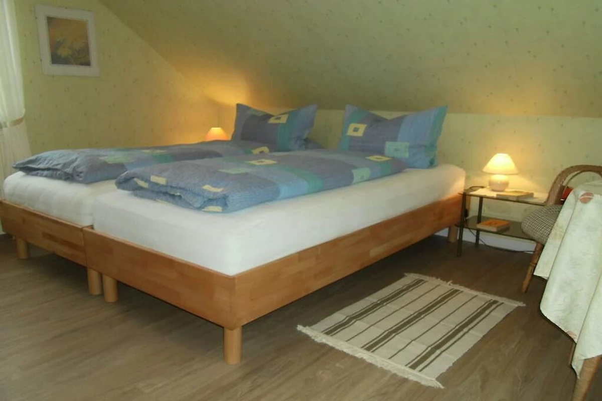 Die Fewo verfügt über 1 Wohnz., 2 Schlafz. mit jeweils 1 Doppelbett (1 auseinanderstellbar), 1 gut ausgestattete Küche, 1 geräumiges Bad/Dusche/WC, 1 Flur und 1 Abstellraum.