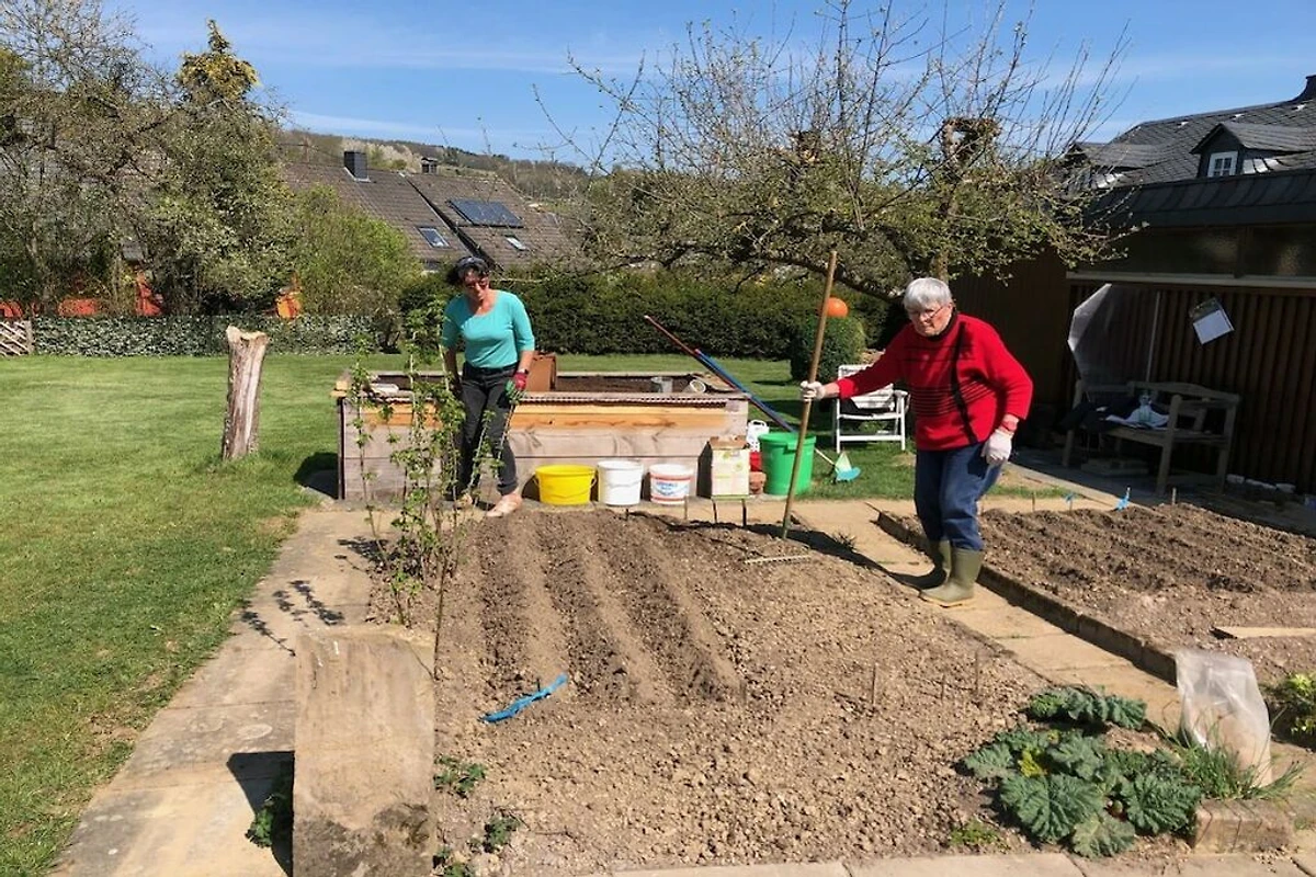 Große Wiese mit Garten und Obstbäumen.Wohnzimmer mit Specksteinofen, Sitzgruppe, Fernseher, HiFi, Internet, Terrasse mit großzügiger elektrischer Markise und Gartenmöbeln.