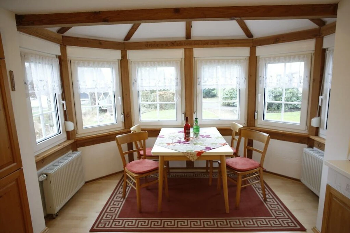 Essbereich im Erker für 4 Personen, Bad mit Dusche und Eckbadewanne, zusätzliches WC im EG, Doppelschlafzimmer, sep.Raum mit Bett für "Schnarcher"o. als kleines Kinderzimmer nutzbar. Abstellraum, Diele mit Garderobe