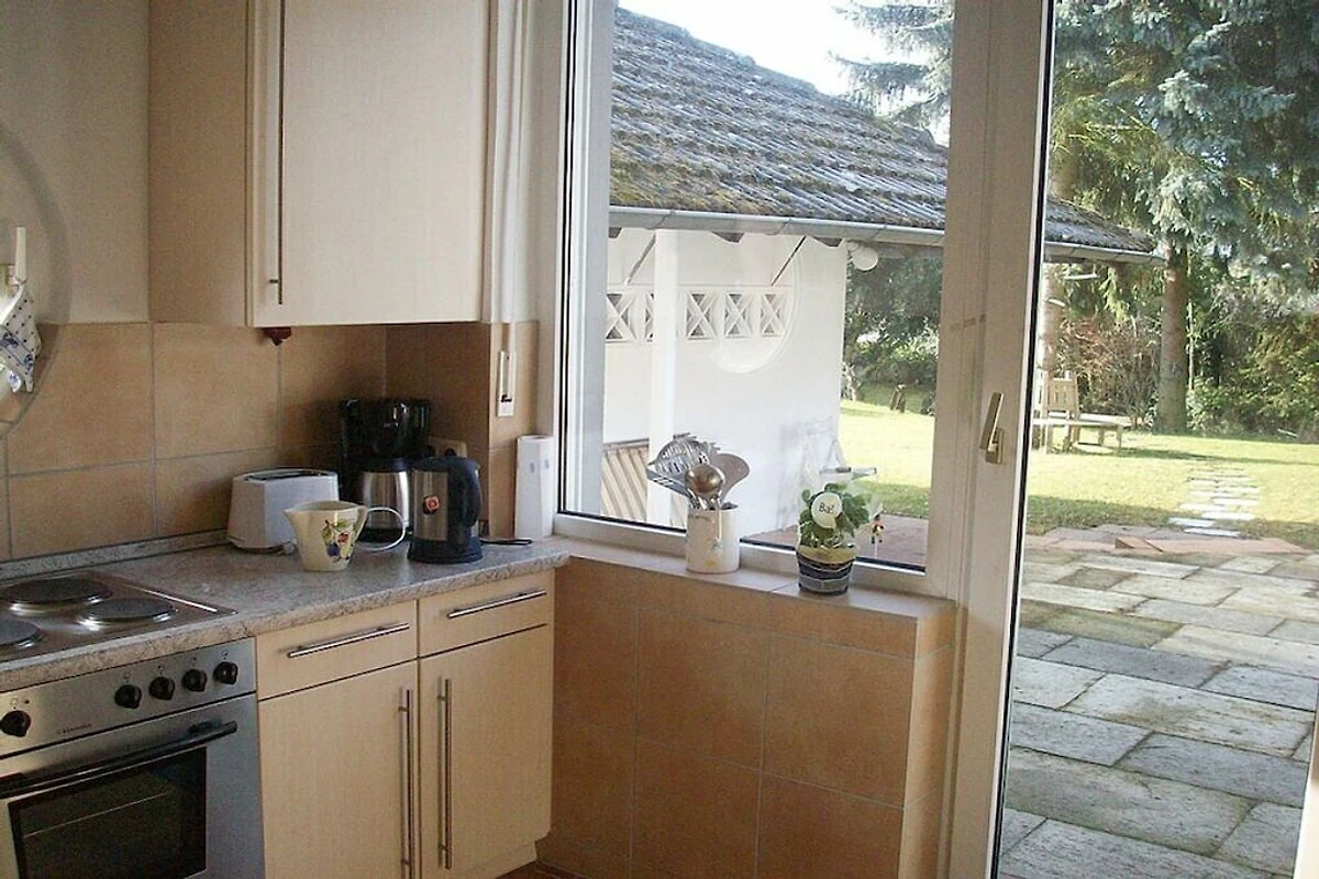 Auf dem weitläufigen Grundstück wurde ein Teilbereich als Garten für Gäste angelegt (mit Terrasse, Rasenfläche, Liegestühle, Grill, Gartentisch und- Stühle usw.). Im Winter lädt ein Wintergarten und der Kachelofen zu gemütlichen Stunden ein.