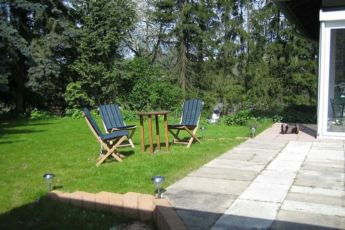 Inmitten eines 1400qm großen Grundstückes befindet sich das geräumige Einfamilienhaus im Bungalowstil. Es stehen 180qm Wohnfläche auf 2 Etagen für bis zu 10 Personen zur Verfügung.