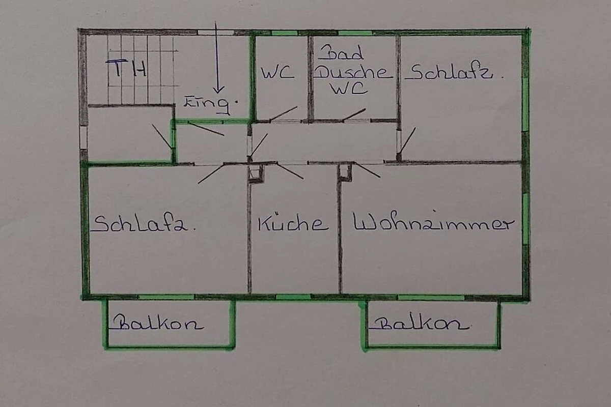 mit Sitzplatz. Außerdem Bad/Dusche/WC sowie ein zweites separates WC