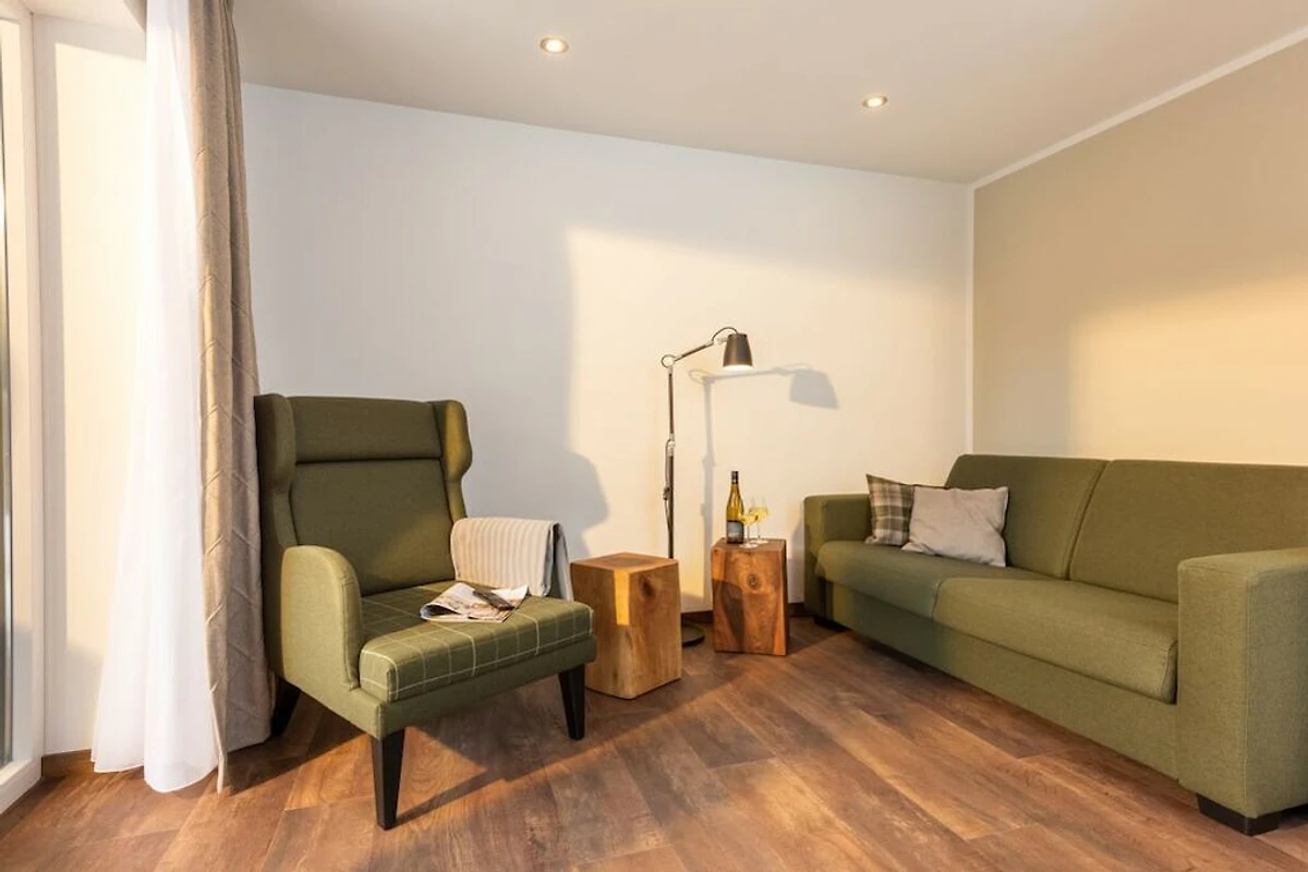 Wohnraum mit Sessel und Couch (als Schlafcouch für 2 Personen möglich)