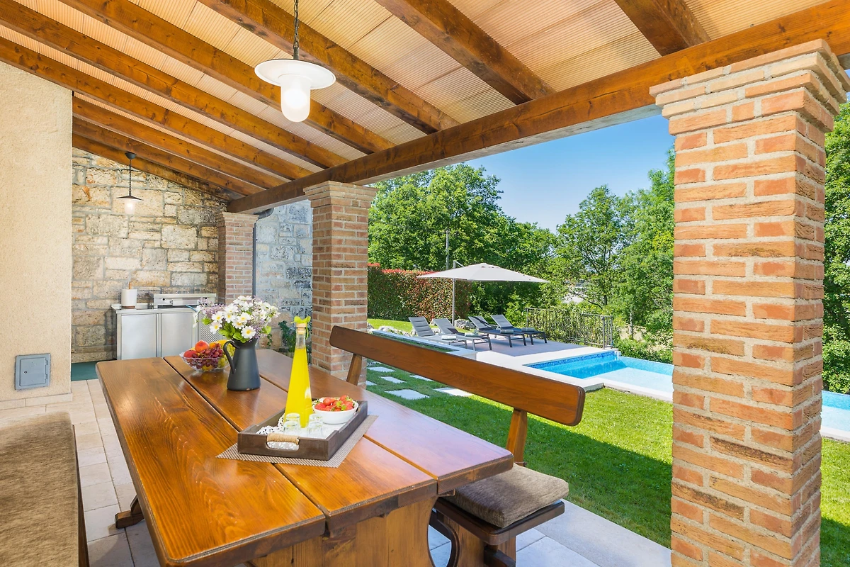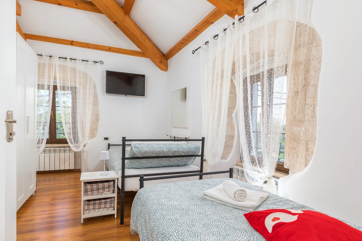 Entdecken Sie die Villa Stara Hiža, eine geräumige Familienunterkunft, die in der malerischen Region von Jakovici liegt und ideal für Gruppen und Familien ist, die ein unvergessliches Urlaubserlebnis suchen. Diese beeindruckende 170 Quadratmeter grosse Villa bietet Platz für bis zu 8 Gäste in 4 wunderschön eingerichteten Schlafzimmern und garantiert ausreichend Raum und Privatsphäre für alle.