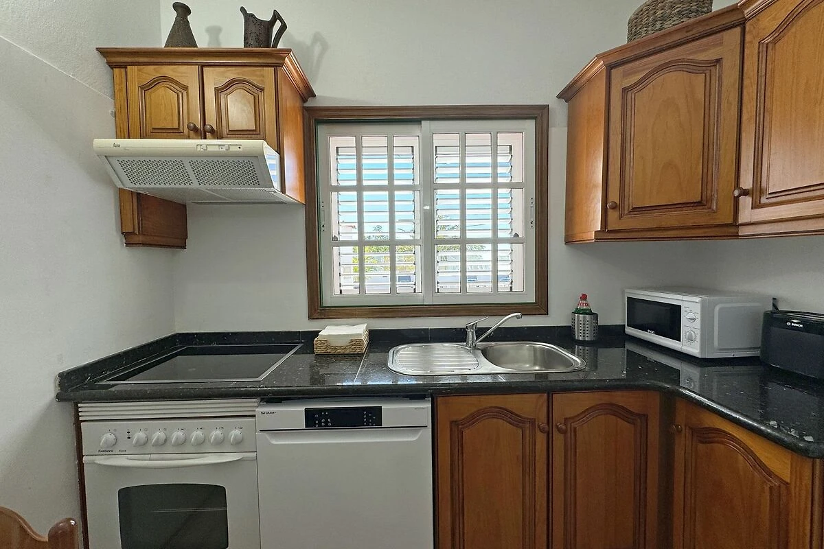 1. Der ältere Teil des Hauses verfügt über zwei gemütliche Schlafzimmer im spanischen Stil, ein modernes Badezimmer und eine voll ausgestattete Küche.