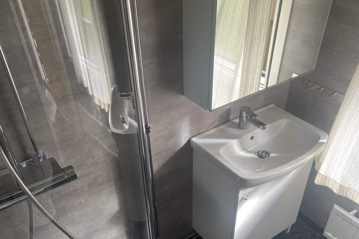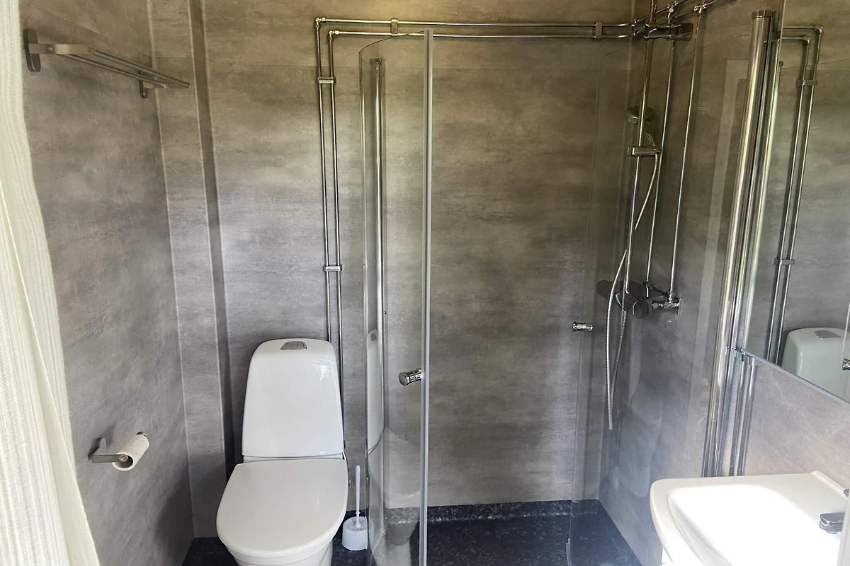 Gemütliche Hütte mit Seeblick auf den Kåtebosjön – Nähe Badeplatz und Natur Willkommen in dieser charmanten und gemütlichen Hütte mit wunderschönem Blick auf den Kåtebosjön – der perfekte Ort für alle, die Ruhe und Erholung in der Nähe von Wasser und Natur suchen. Die Hütte liegt in ruhiger, ländlicher Umgebung und ist nur 300 Meter von einem gemeinschaftlich genutzten Badesteg entfernt, ideal für ein erfrischendes Bad an warmen Sommertagen. Die Unterkunft bietet einen einfachen, rustikalen Standard mit viel Charakter, verfügt jedoch über ein neu renoviertes, modernes Badezimmer für zusätzlichen Komfort. Es gibt zwei Schlafzimmer – eines mit zwei Einzelbetten und eines mit einem Etagenbett, was das Haus besonders gut für eine kleine Familie oder eine kleine Reisegruppe geeignet macht. Die Küche ist mit einem Essbereich ausgestattet, perfekt für gemeinsame Mahlzeiten. Im Wohnzimmer sorgt ein offener Kamin für eine gemütliche Atmosphäre an kühleren Abenden. Von hier aus gelangt man auf eine überdachte Terrasse, die in den warmen Monaten als zusätzliches Freiluftzimmer genutzt werden kann – auch hier gibt es einen weiteren offenen Kamin, ideal für lange Sommerabende mit Blick auf den See. Wer den See aktiv erkunden möchte, kann in der nahegelegenen Vårdsnäs Stiftsgård ein Kajak mieten – eine schöne Möglichkeit, die Natur aus einer neuen Perspektive zu erleben. Dies ist ein einfaches, aber charmantes Ferienhaus in wunderschöner Umgebung, wo See, Natur und Ruhe im Mittelpunkt stehen. Ein wunderbarer Ort, um wirklich abzuschalten!