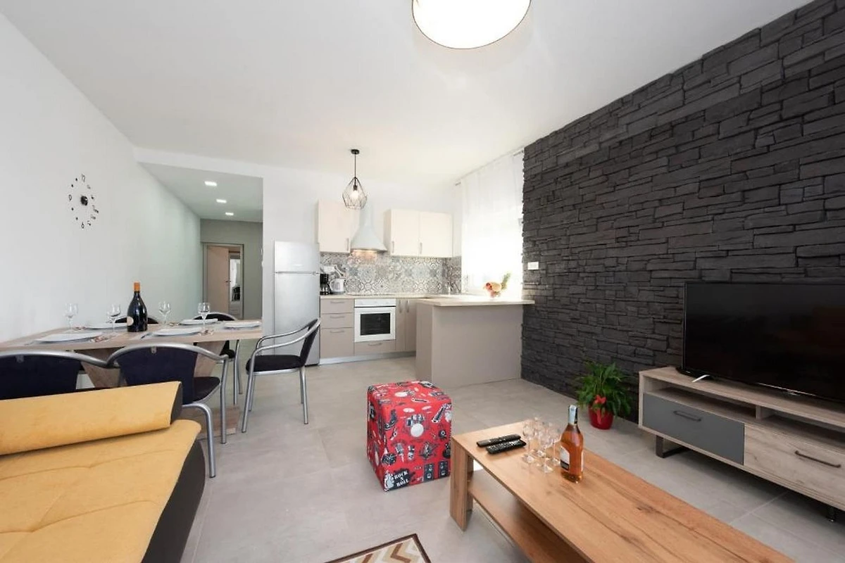 This lovely two bedroom apartment is perfectly fit for up to five people. It features free WiFi, air conditioning as well as SAT LCD TV. The open space living