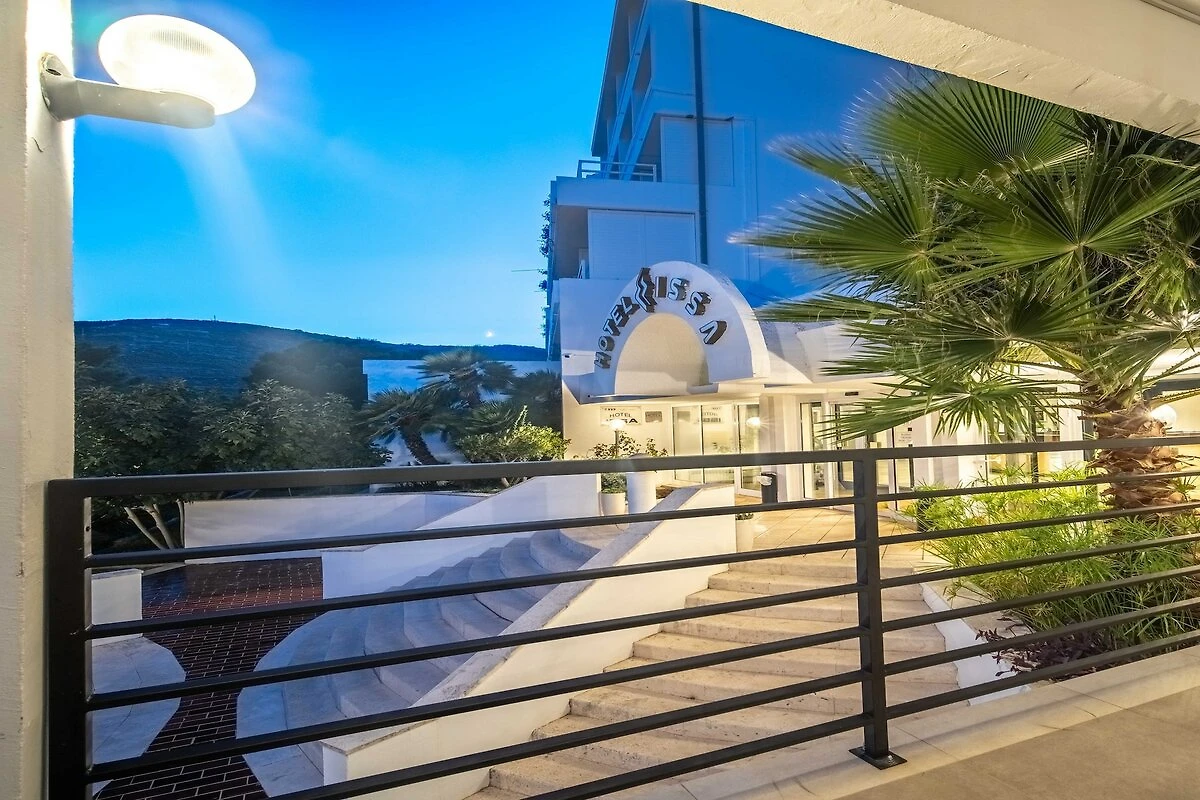 Hotel Issa, located on the Prirovo peninsula in Vis, Croatia, offering comfortable rooms with balconies overlooking the sea or park. Guests enjoy amenities like air conditioning, free Wi-Fi in public areas, and an on-site restaurant serving buffet meals. The hotel is a 10-minute walk from Vis town center and offers easy access to a nearby pebble beach. Facilities include a lobby bar, free parking, and recreational activities like mini golf. Renowned for its excellent location and friendly service, Hotel Issa is ideal for a relaxing island getaway.