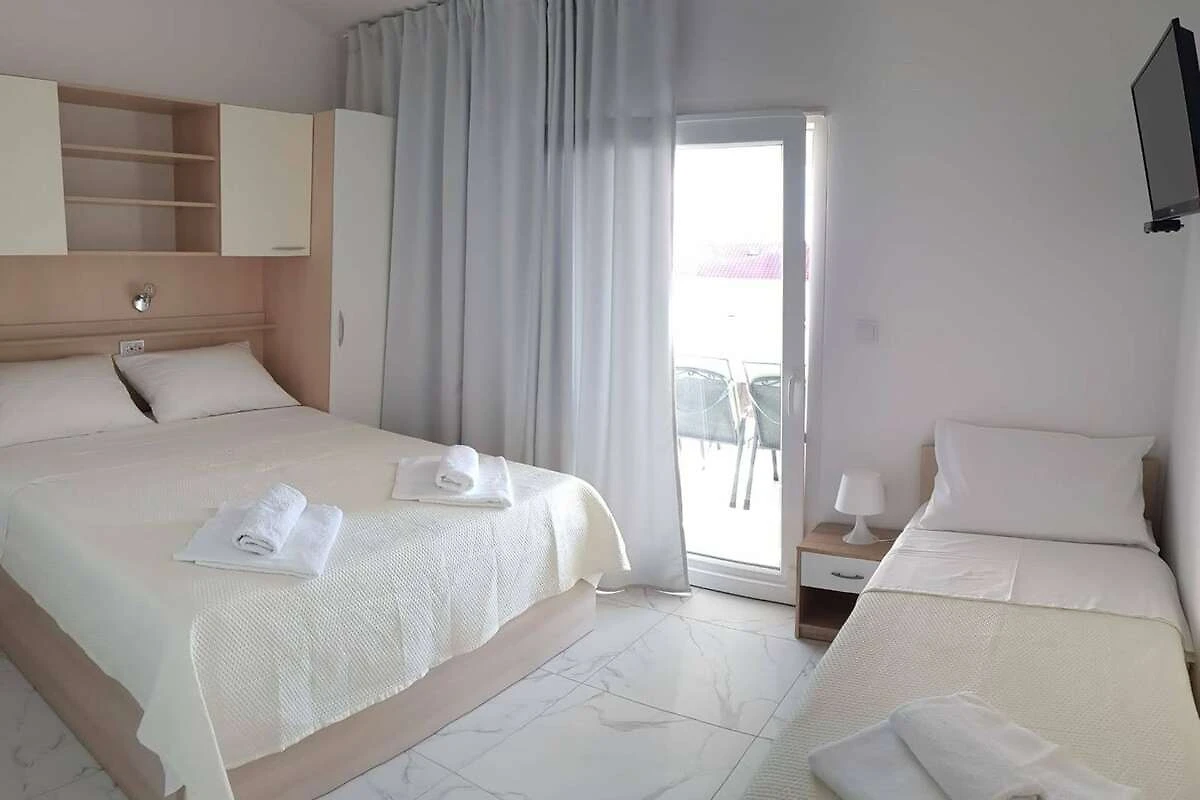 Apartments Sun Dance in Novalja, Ličko-senjska County, Croatia, offers accommodations featuring heated pools. The property provides amenities such as air conditioning, fully equipped kitchens, private bathrooms, and balconies or terraces. Guests can enjoy facilities like free Wi-Fi, satellite flat-screen TVs, and barbecue areas. The apartments are conveniently located near local attractions, with Lokunje Beach approximately 1.8 km away, Babe Beach around 2 km away, and Planjka-Trinćel Beach about 2.2 km away. The nearest airport is Zadar Airport, situated 85 km from the property.