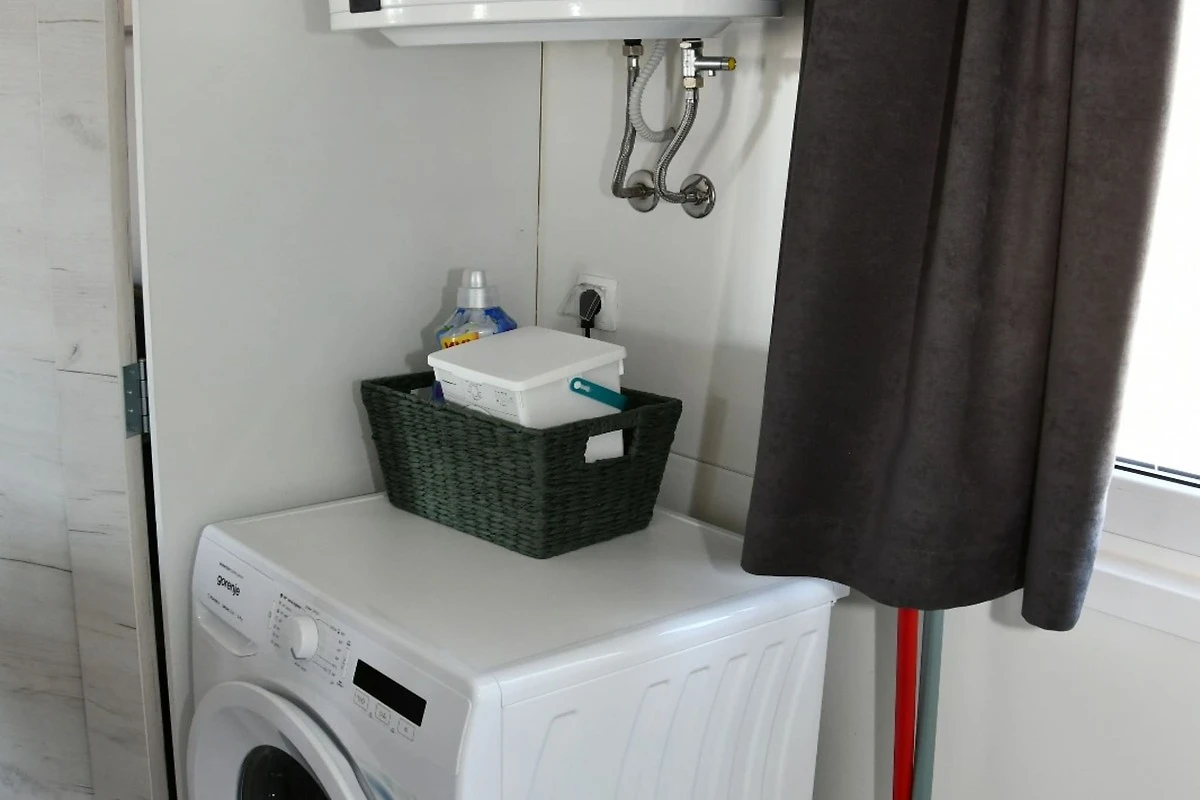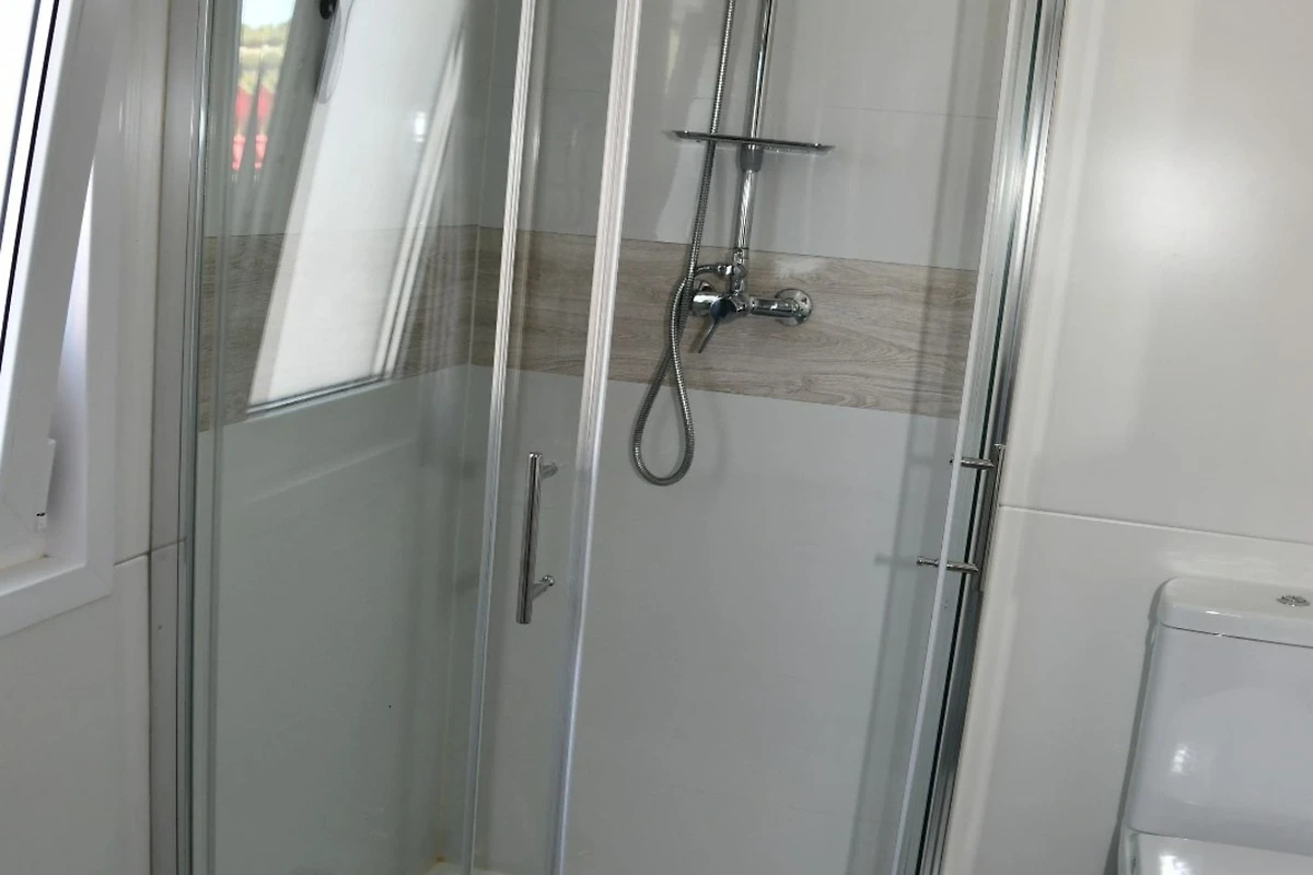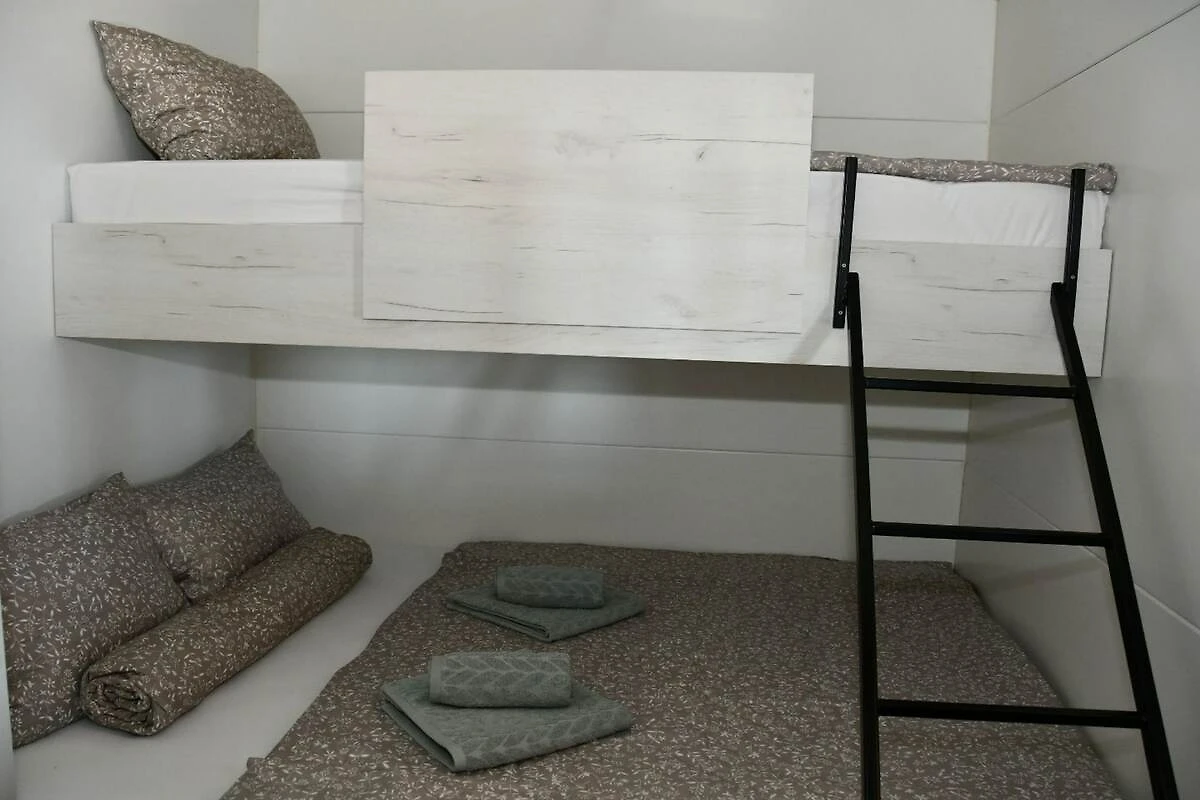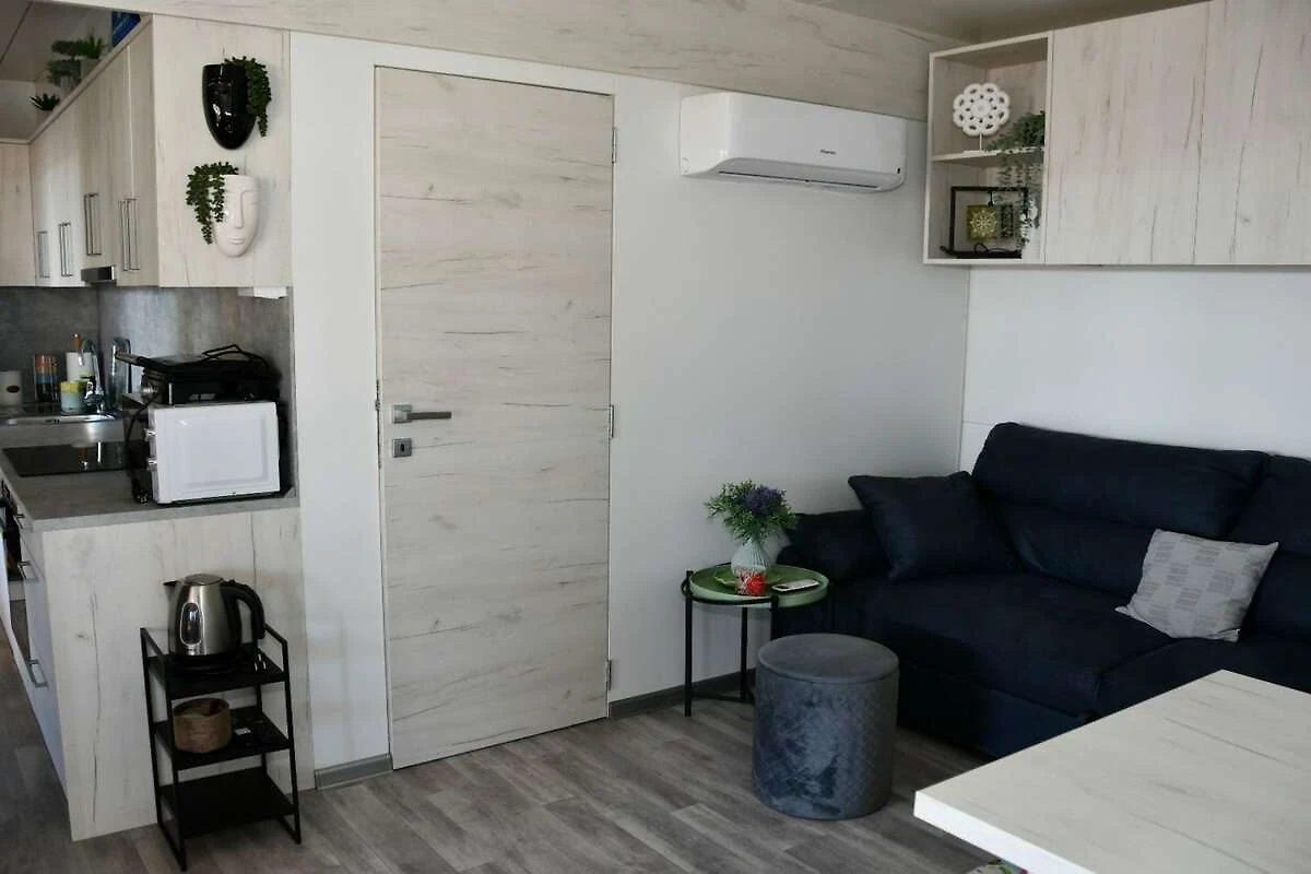 This mobile home with terrace and sea view (Allegro) is fitted with 2 bedrooms which includes double bed / bunk bed and with living room - double sofa bed as well as private bathroom with toilet and shower.