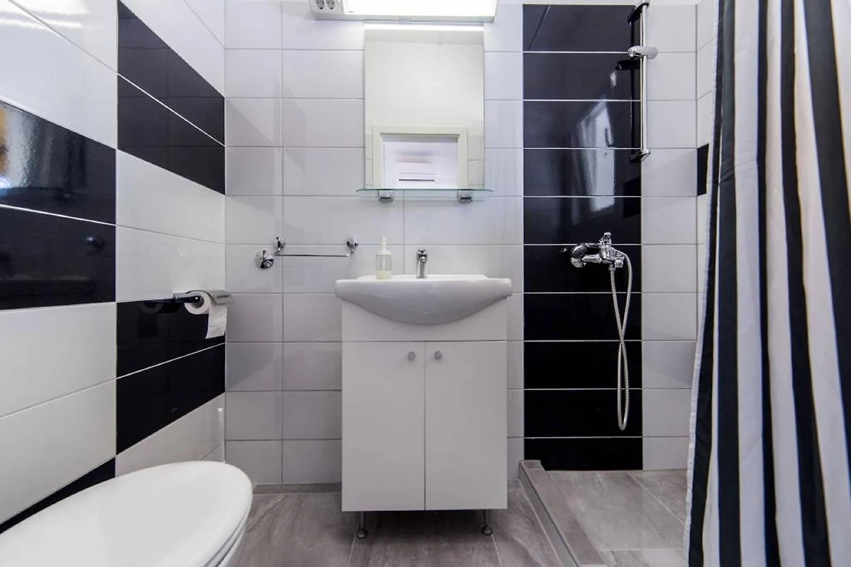 This two-bedroom apartment can accommodate up to five guests. It features a flat-screen TV . The private bathroom is equipped with a shower and toilet.