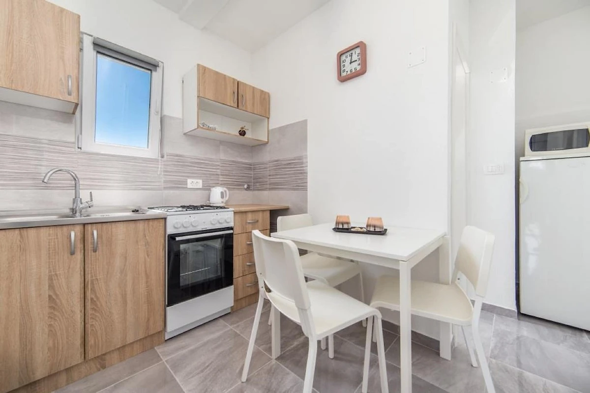 Thanks to its excellent location, everything you'll need for your vacation is just a short walk from the property. Grocery stores, cafes, restaurants—everything is within a 200 m radius. The beach is 90 m away from the property.