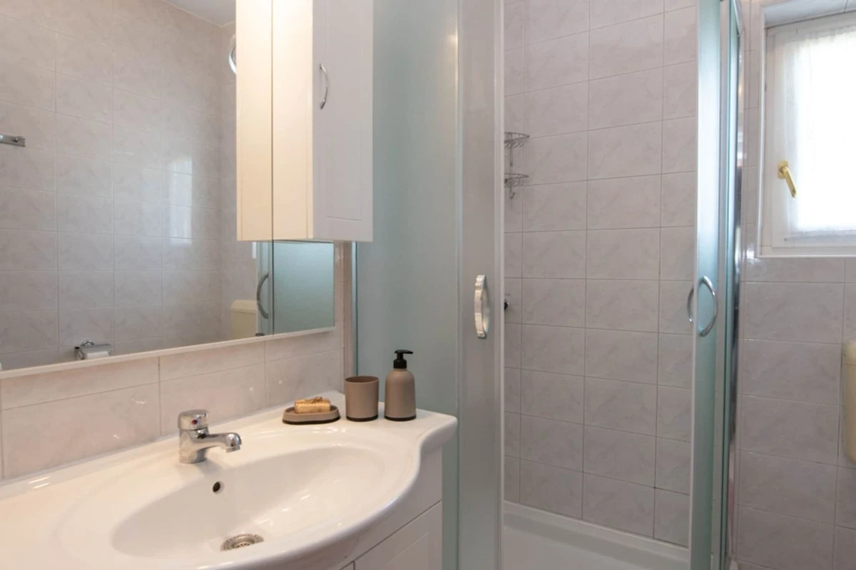 This one-bedroom apartment can accommodate up to four guests. The private bathroom is equipped with a shower and toilet.