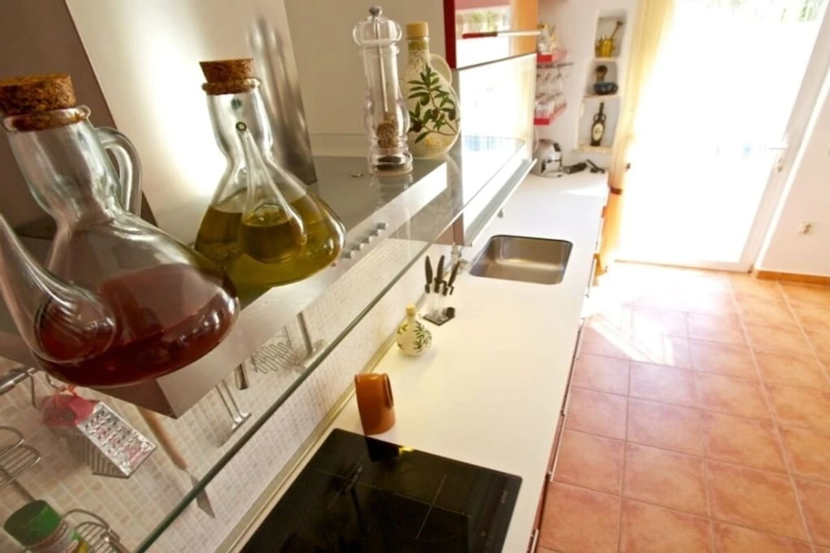 Es verfügt über 4 Schlafzimmer, 8 Betten, 3 Badezimmer +1 WC, 2 Wohnzimmer, 2 Kuche.. Moglichkeik fur noch 2 Kinder im Sofabetten.