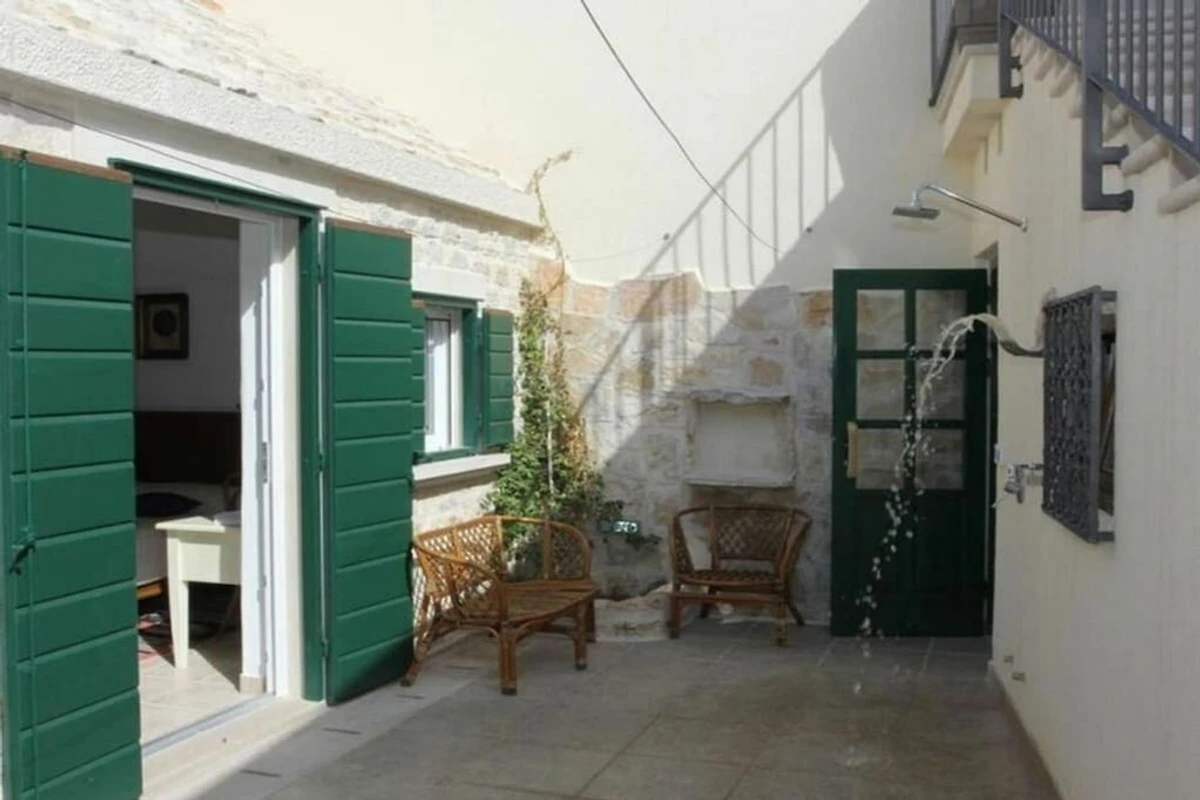 Das Erdgeschoss ist ein besonderer Teil dieses einheimischen dalmatinischen Hauses, das als separate Wohnung genutzt werden kann. Es besteht aus einem geräumigen Wohn- und Esszimmer mit Sofa und einem großen, modernen Esstisch mit 12 Stühlen. In diesem Bereich gibt es auch eine voll ausgestattete, geräumige und moderne Shabby-Chic-Küche, in der es ein wahres Vergnügen ist, alle Spezialitäten zuzubereiten. Im Erdgeschoss gibt es auch ein Zimmer mit einem Doppelbett, das an alte Zeiten erinnert, und ein Doppelzimmer mit zwei Einzelbetten, das durch ein kleines Fenster mit dem Wohnzimmer verbunden ist. Es gibt auch Badezimmer mit Dusche.