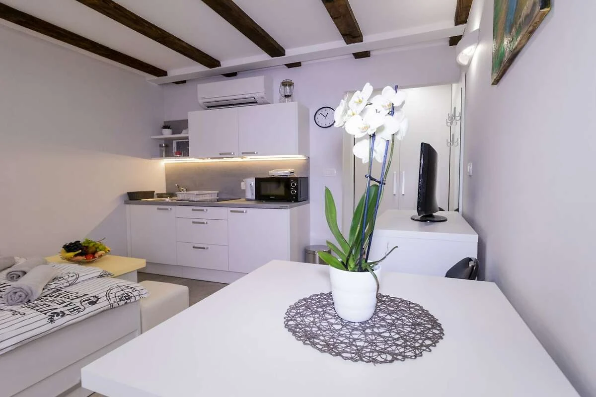 Beautiful, newly refurnished, located in heart of Piran, only 30 meters away from Tartini Square, 100 m to the beach, are three studio apartments. Everything you need on a vacation is provided, fully equipped kitchens, new and comfortable double beds, private bathrooms with showers, toilet, free toiletries, every apartment has bed linen and towels waiting for you.