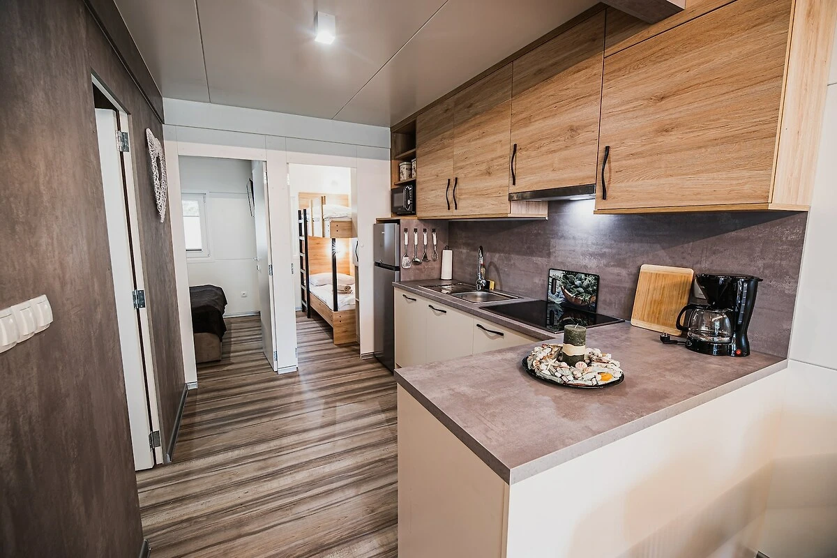 Lake Serenity Premium Mobile Homes with Thermal Riviera Tickets in Čatež ob Savi, Slovenia, offer modern accommodations within the Terme Čatež complex. Each unit includes a living area, a fully equipped kitchen, air conditioning, free Wi-Fi, and a private terrace with lake views. Guests receive tickets to the Thermal Riviera, providing access to indoor and outdoor pools, water slides, and wellness facilities. Ideal for families and groups, the location also features sports facilities, on-site dining, and spa services for a relaxing stay.