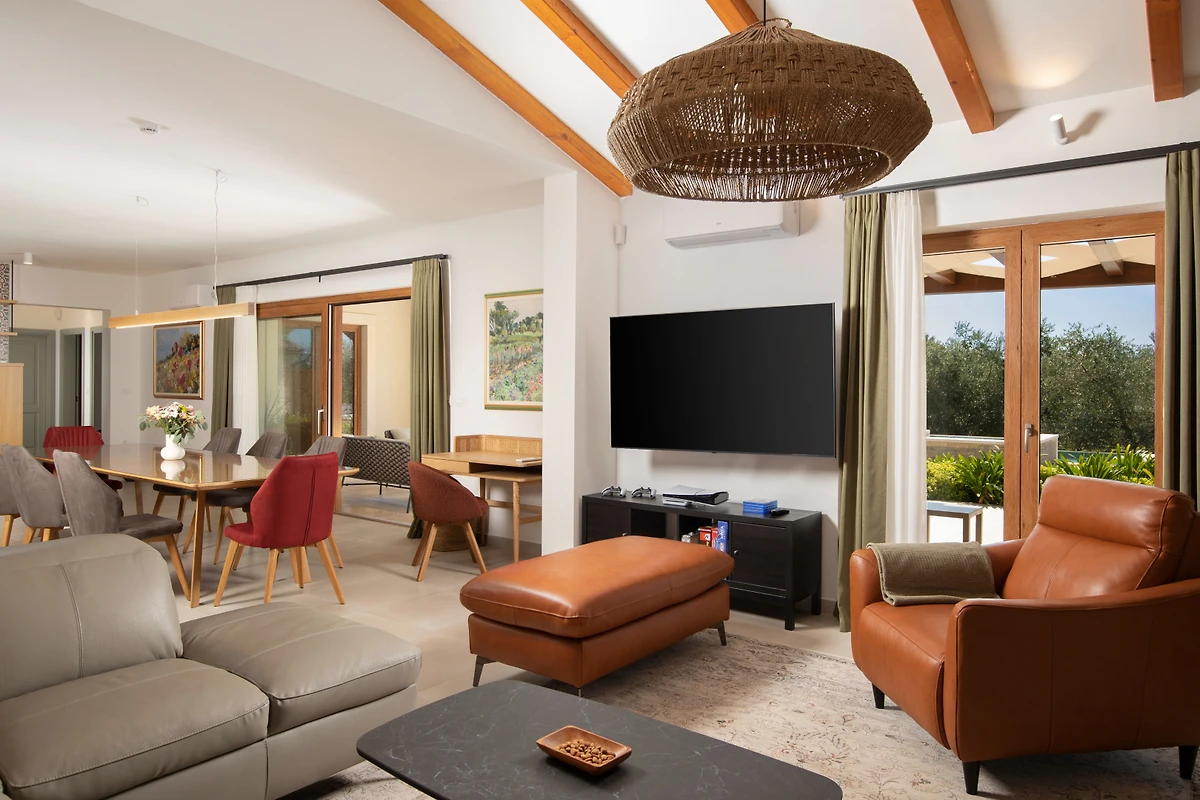 Entdecken Sie Casa Ginetto, eine atemberaubende moderne Villa, die in einer ruhigen Waldlandschaft in der Nähe von Pula eingebettet ist und ideal für Familien und Paare ist, die eine luxuriöse Auszeit suchen. Diese geräumige 350 Quadratmeter grosse Immobilie bietet Platz für bis zu 8 Gäste und verfügt über 4 wunderschön eingerichtete Schlafzimmer mit einer Mischung aus King-Size- und Queen-Size-Betten.